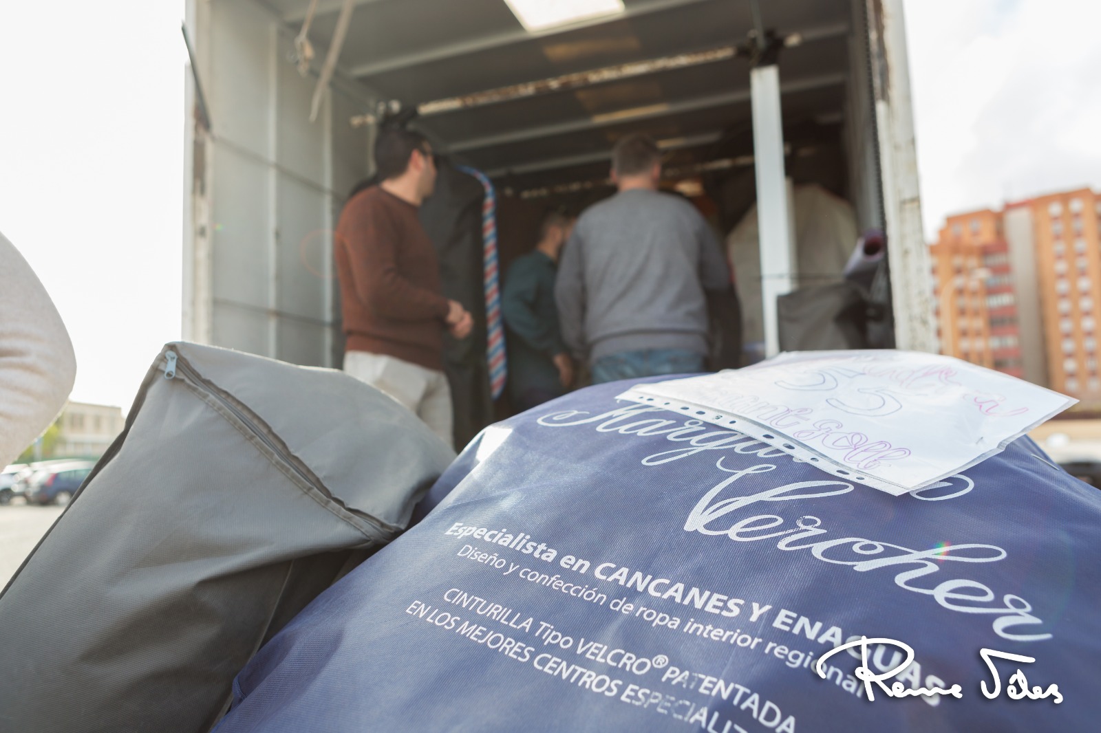 Los trajes de novia alicantina de nuestras bellezas 2019, y candidatas 2020, ya están camino de Madrid. El parking de Doctor Rico ha reunido hoy a todas las candidatas que han subido sus trajes al camión y mañana, cuando lleguen al hotel, los podrán recoger para vestirse el sábado y desfilar por Fitur y el centro de Madrid.