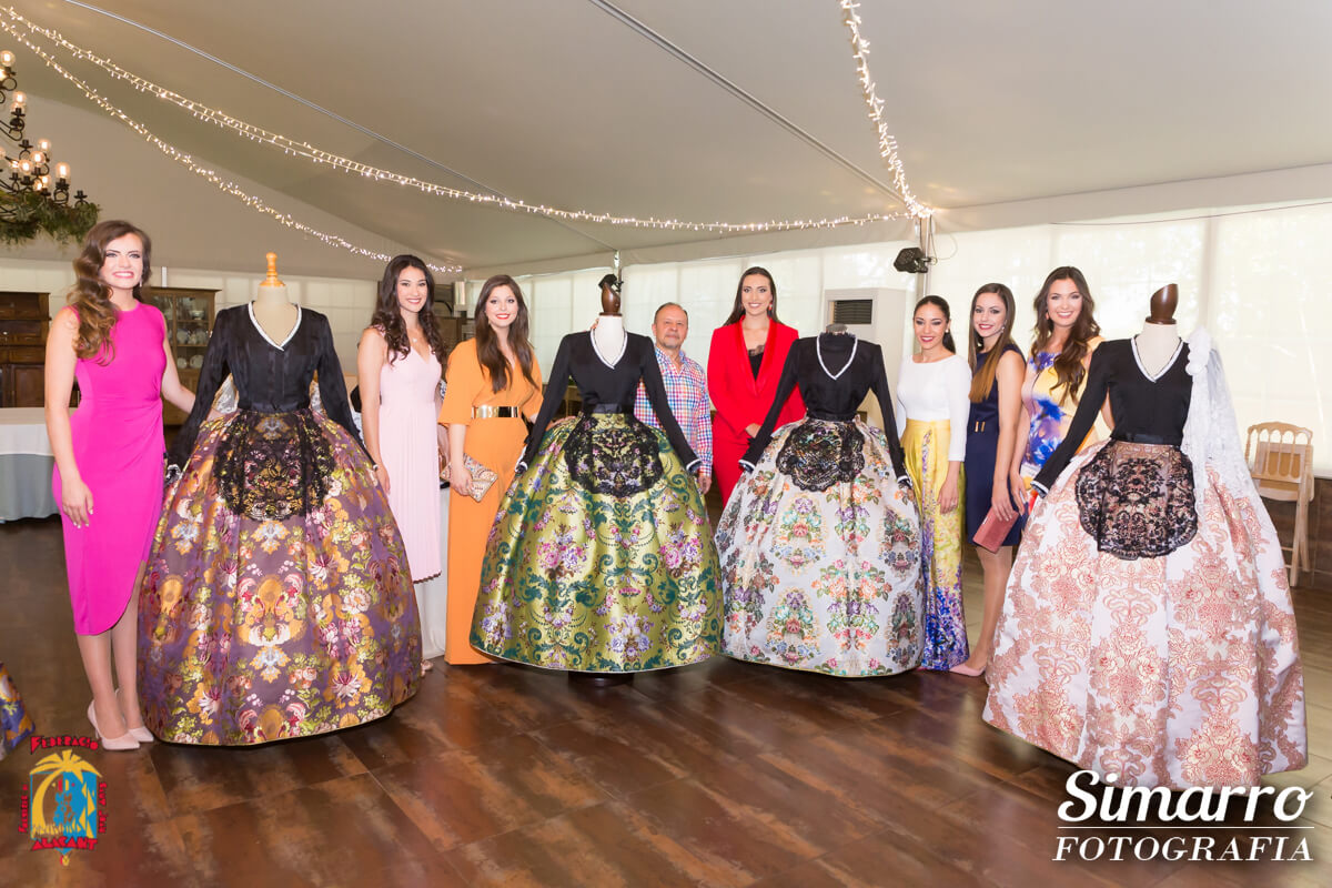 El restaurant Torre de Rejas ha acogido esta mañana la presentación oficial de la indumentaria y complementos que vestirán a les belleses del foc d’Alacant i les seues dames d’honor 2018. Allí se han congregado los indumentaristas oficiales y los gerentes de cada una de las empresas que colaboran este año con la Federació de les Fogueres de Sant Joan vistiendo a las máximas representantes de la fiesta.