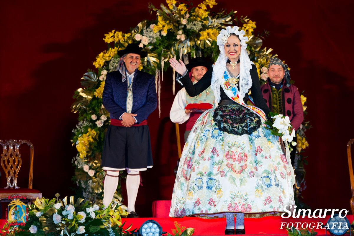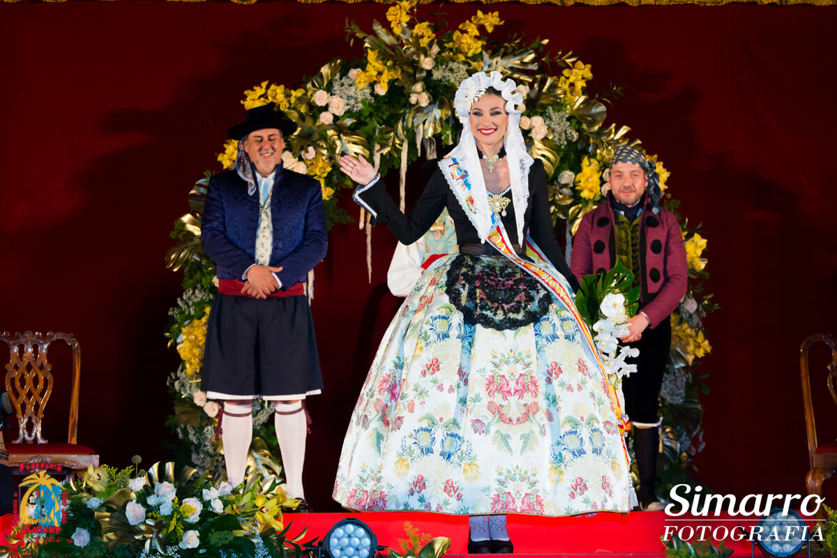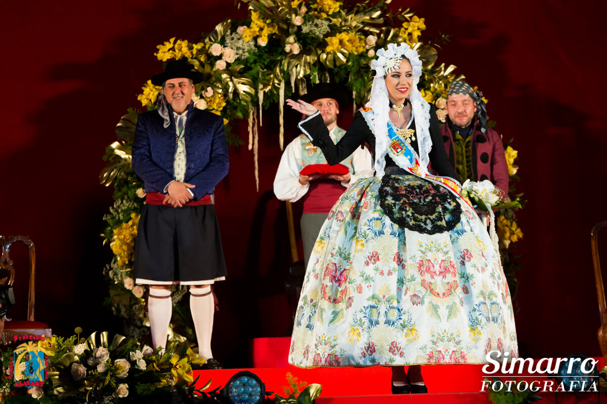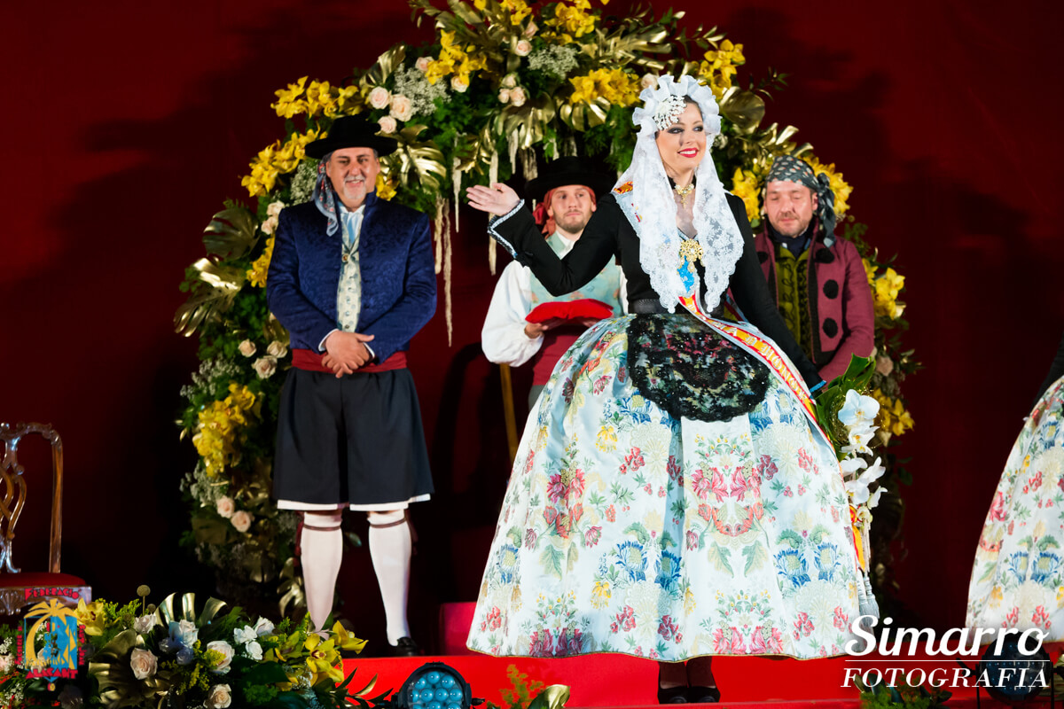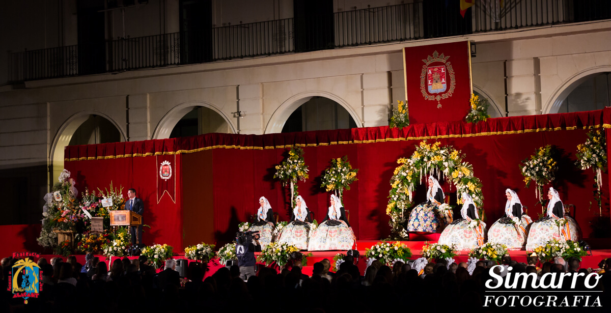 Toni Cabot, director del Diario Información, fue el mantenedor del acto. Cabot presentó de forma cariñosa a cada una de las siete representantes del fuego, mostrando si trayectoria festera y profesional.