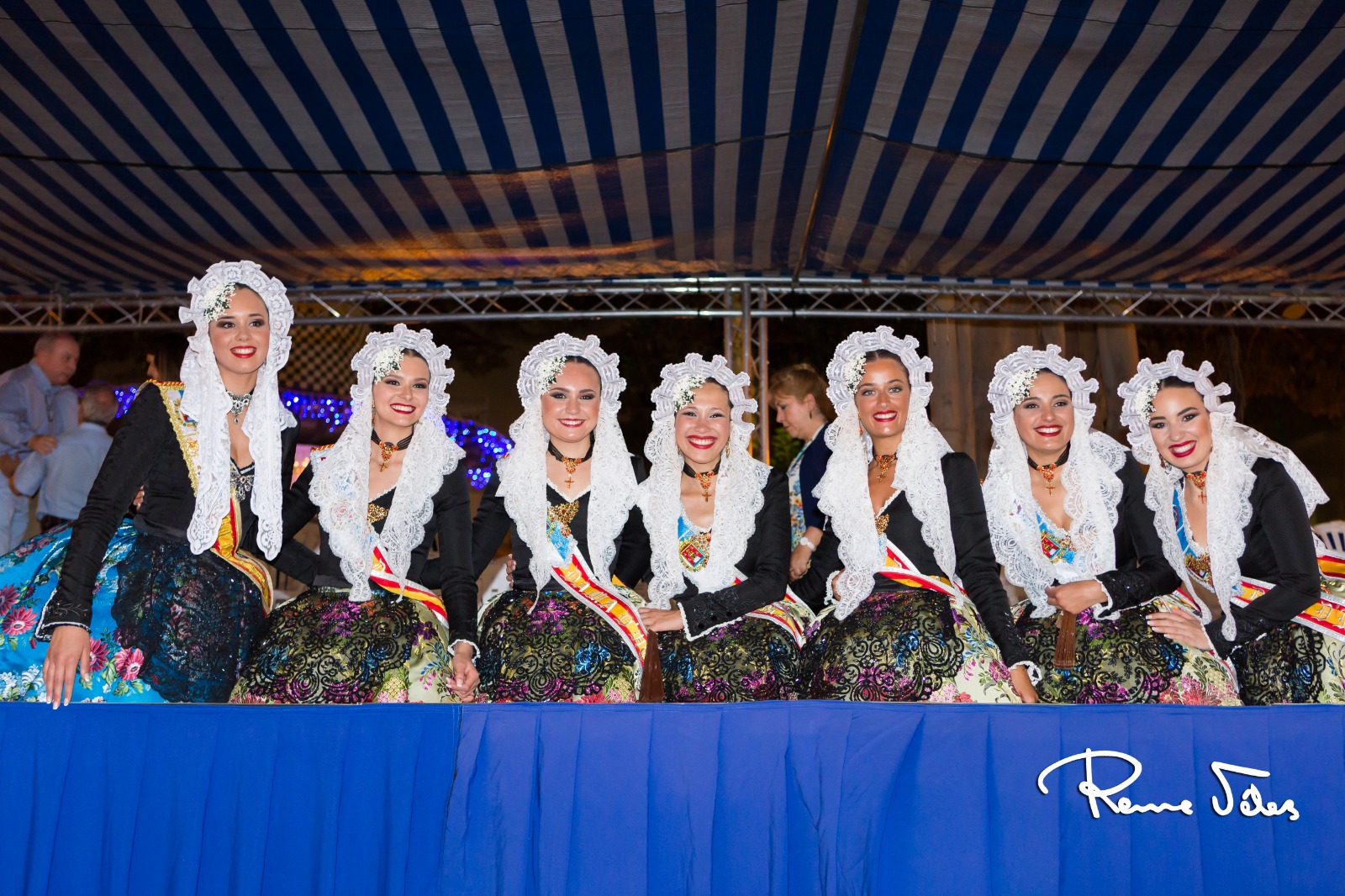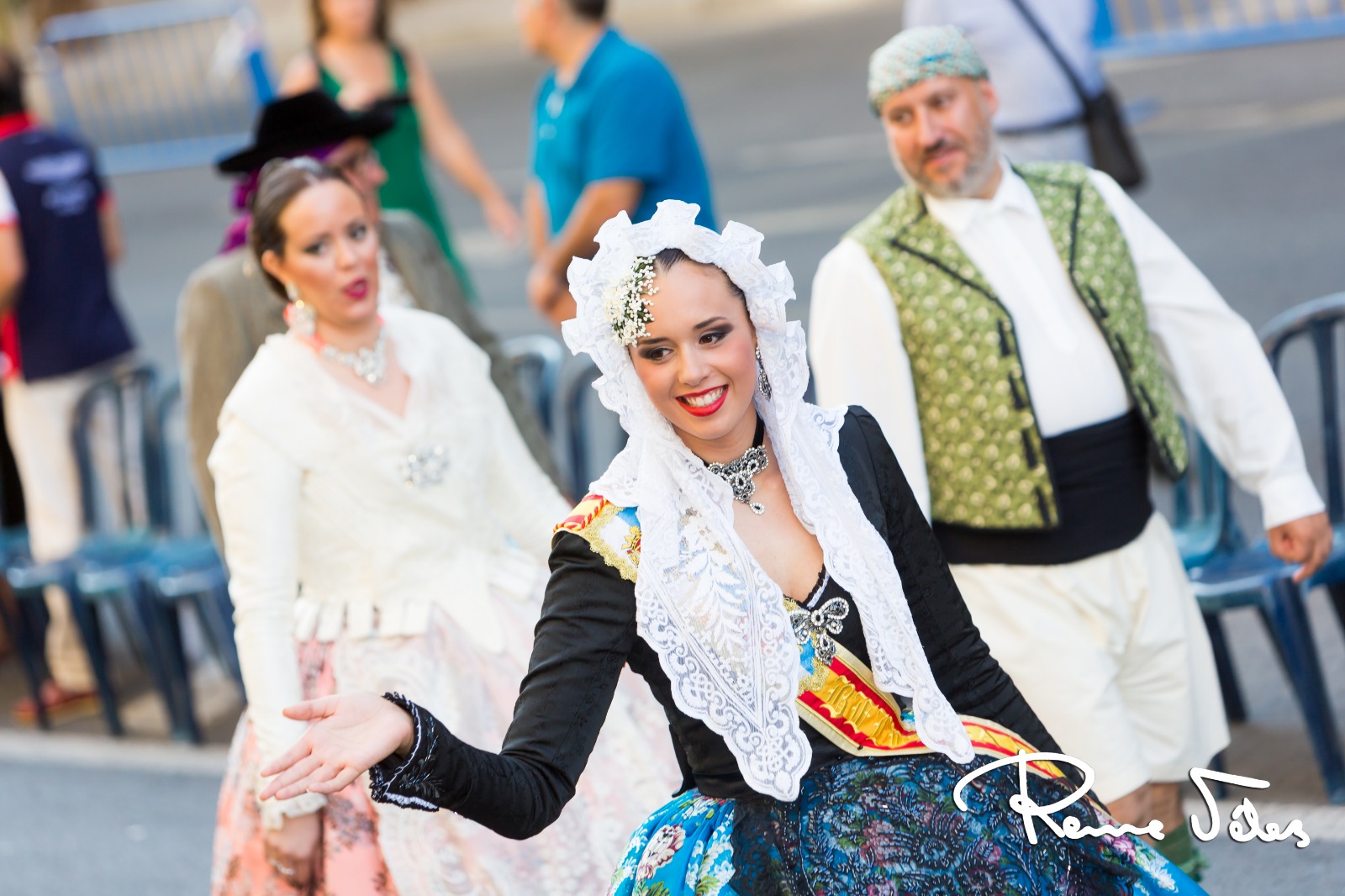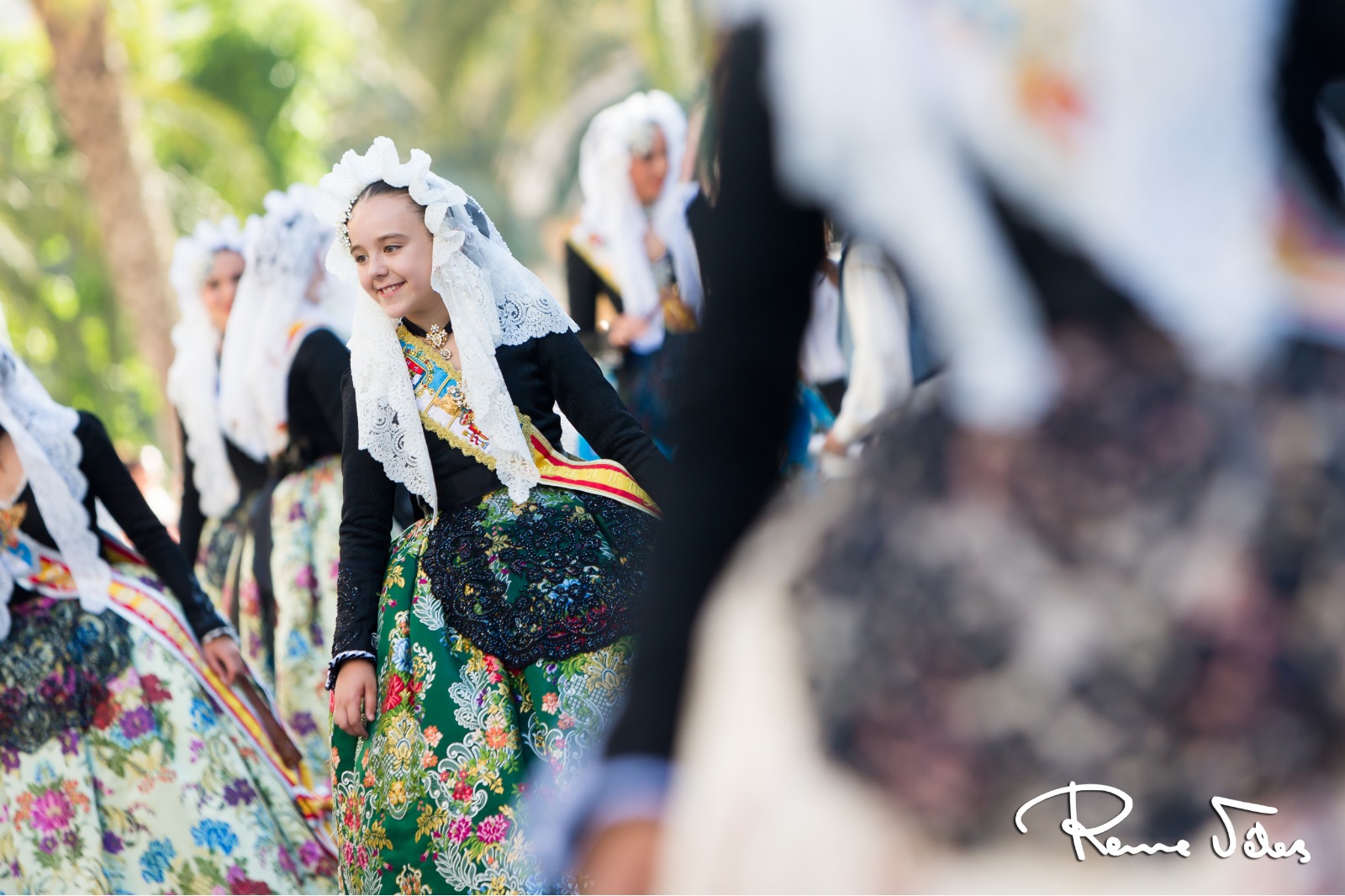 Las encargadas de abrir este desfile fueron les belleses del foc d’ Alacant, Isabel Bartual y Noelia Vinal, y sus damesd’honor, acompañadas por miembros de la Federació de Fogueres y el concejal, José Ramón González.