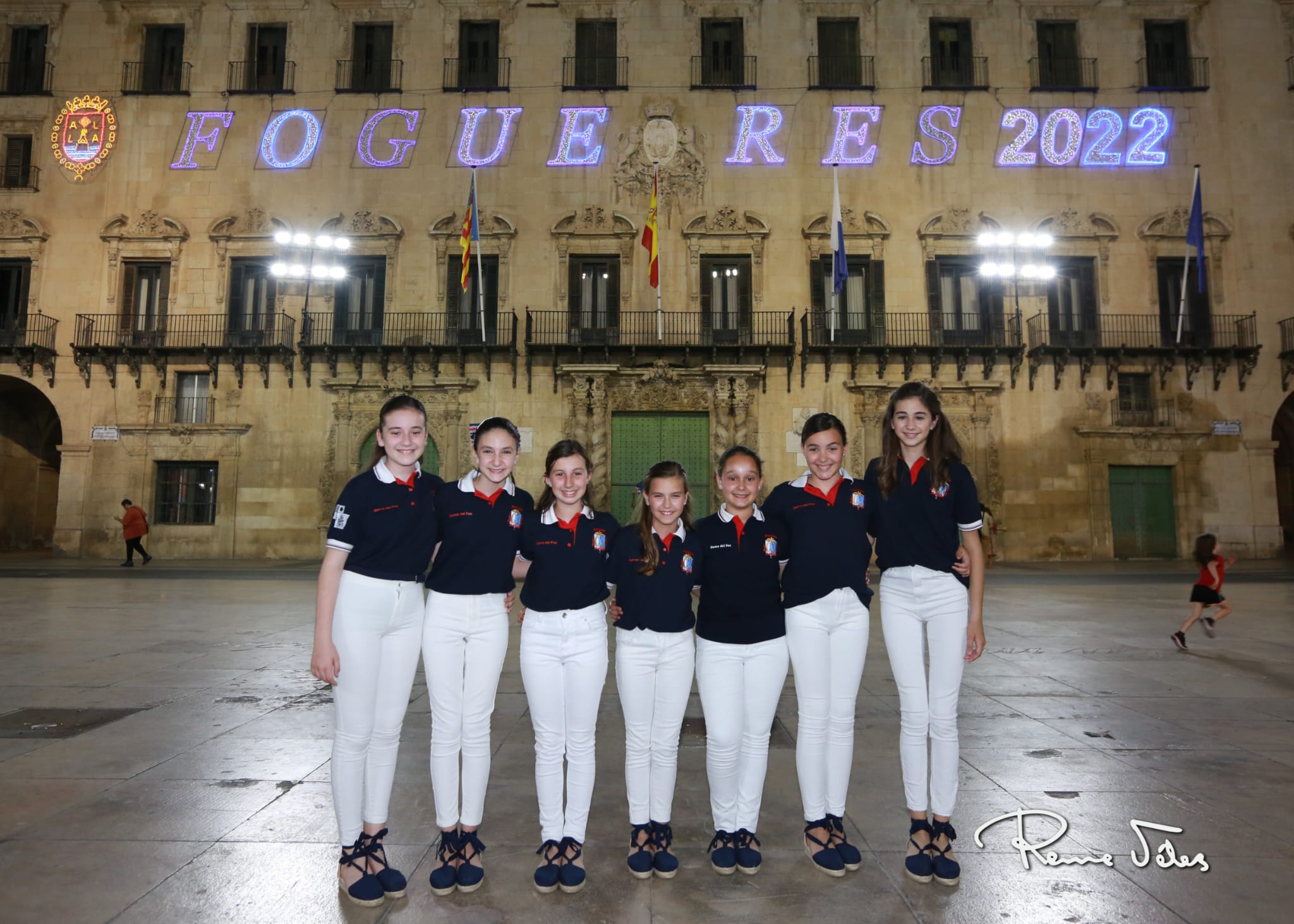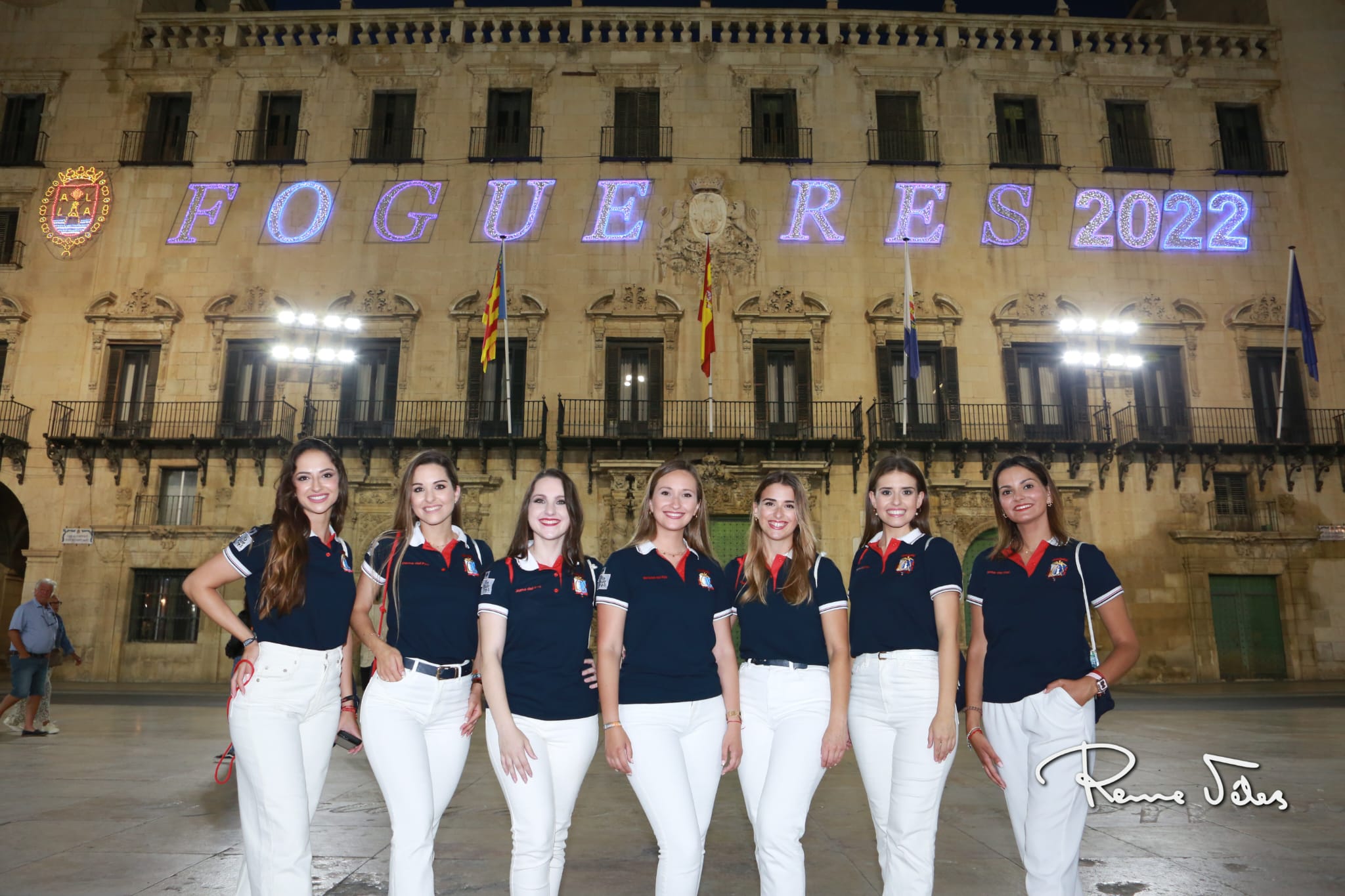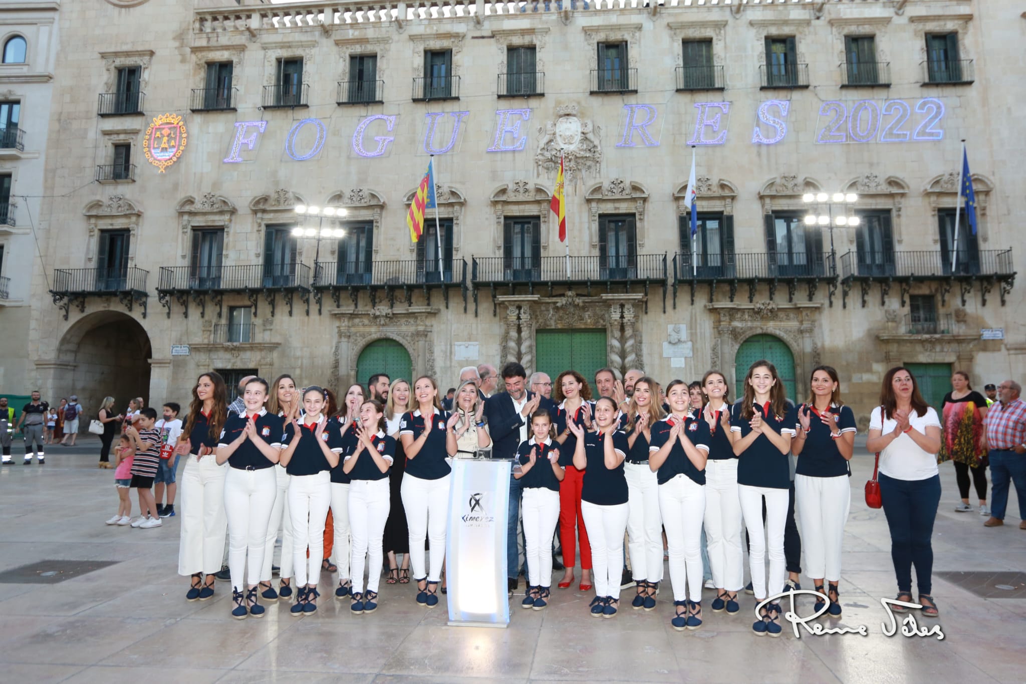 La ciudad de Alicante ya está preparada para mañana iniciar les Fogueres de Sant Joan. Les belleses del foc d’Alacant, Marina Niceto y Valeria Gómez, sus dames d’honor, el alcalde de la ciudad, Luis Barcala, la presidenta de la Federació de les Fogueres de Sant Joan y parte de la corporación municipal inauguraron ayer en el alumbrado en la plaza del Ayuntamiento.