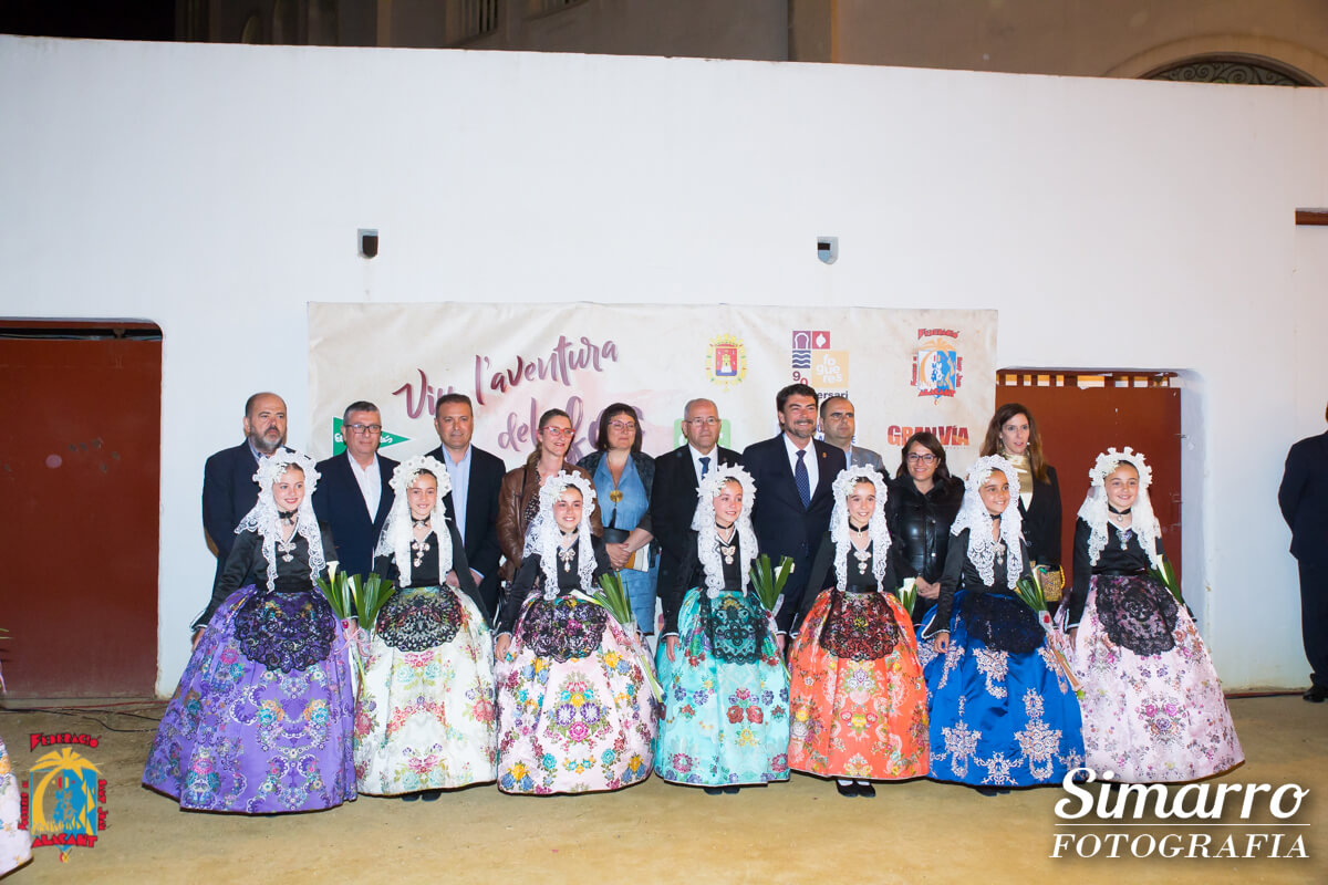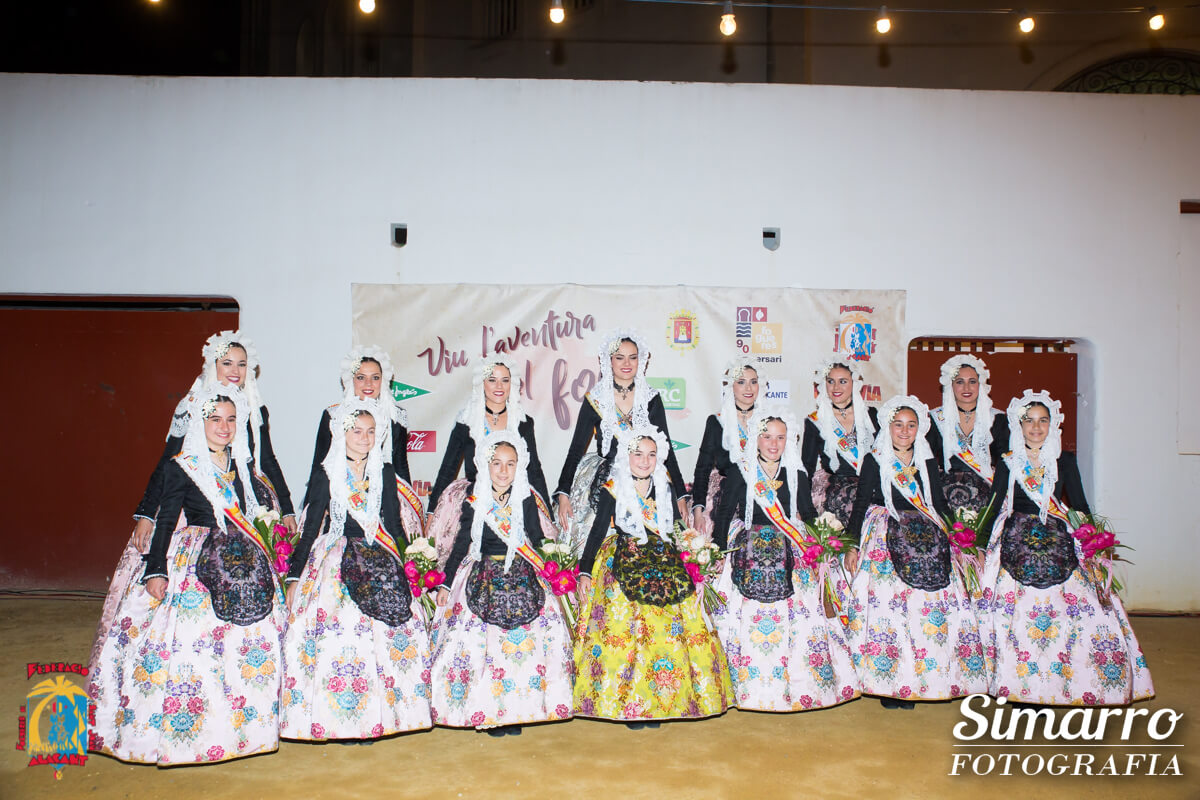 Inés Domínguez de la foguera Florida Portazgo, India Jerez de Santa Isabel y Helena Romero de Benito Pérez Galdós, fueron las encargadas de conducir el acto y de presentar los desfiles indivduales que realizaron las candidatas al título de bellesa del foc infantil d’Alacant 2018 con el traje de la pasarela y el traje de la fiesta.