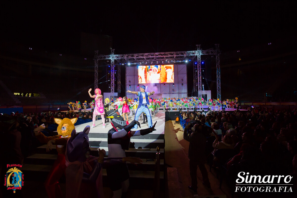 Los niños y niñas de les Fogueres hicieron disfrutar a todos los asistentes de las canciones de los dibujos que veía sus padres : Heidi, la abeja Maya, los Picapiedras…. Y demostraron mucho arte sobre el escenario.