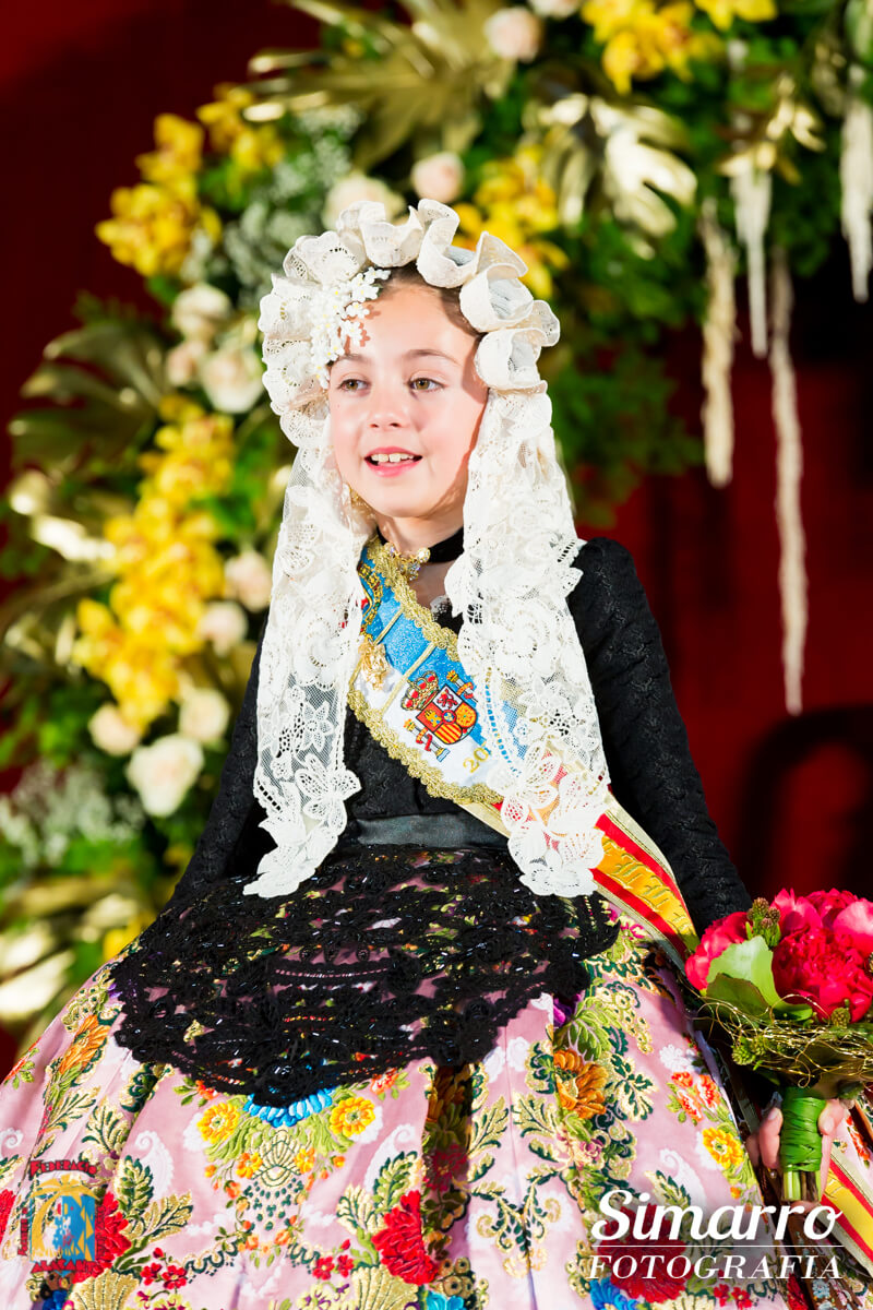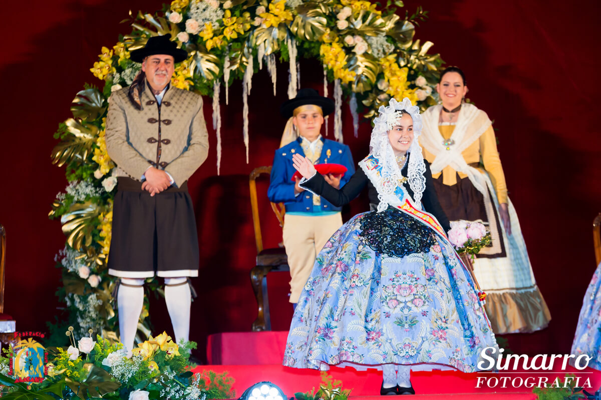 Durate el acto se desveló uno de los secretos mejor guardados, el color del espolín de la máxima representante infantil de les Fogueres 2018: una joya en rosa bebé que acompañará a Andrea del Caño durante todo su reinado. El dibujo, es el mismo que estrenaron el pasado año les belleses del foc. Conchi Beneyto ha sido la encargada de elaborar los trajes de novia alicantina que vestirán las siete niñas. Les dames d’honor lucieron sus faldas oficiales en un azul bahía, todas ellas de la empresa Vives i Marí.