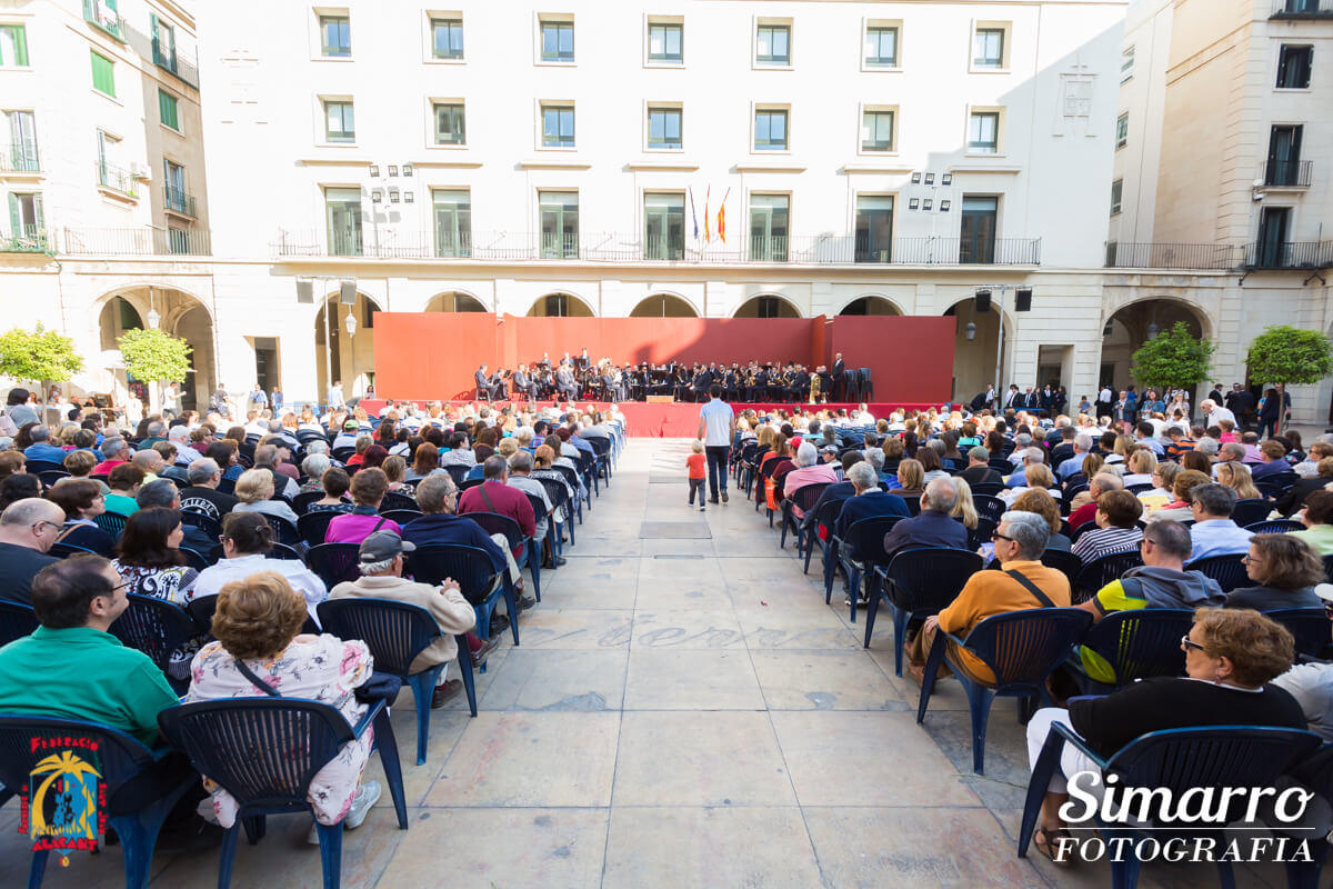 La Plaza del Ayuntamiento ha acogido el Concierto Conmemorativo para celebrar los 90 años de les Fogueres. Este ha sido uno de los actos programados por la comisión de trabajo y que se ha dividido en tres actos.