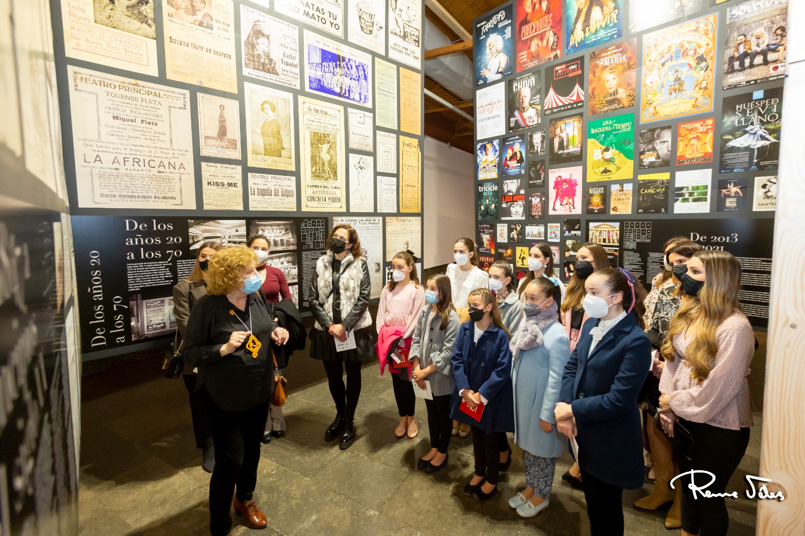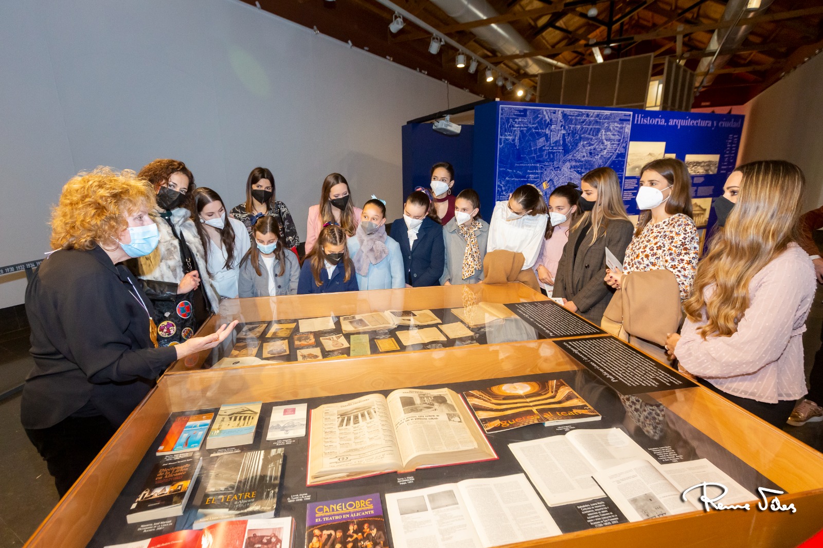 Les belleses del foc d’Alacant, Marina Niceto y Valeria Gómez, i les seues dames d’honor, han visitado hoy la exposición sobre el 175 Aniversario del Teatro Principal en la Lonja del Pescado. A la visita se ha sumado también la presidenta de la Federació de les Fogueres de Sant Joan, Toñi Martín-Zarco.