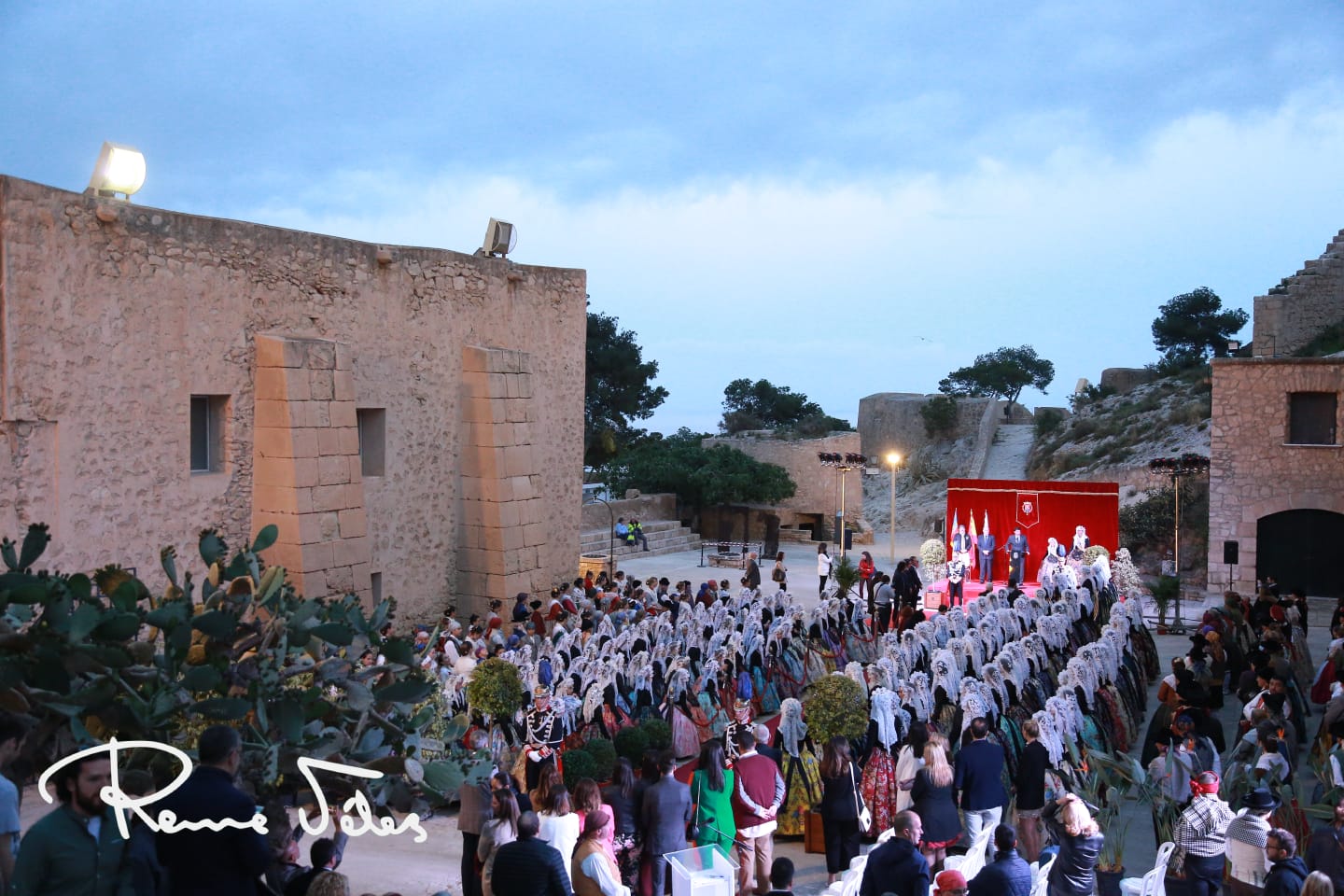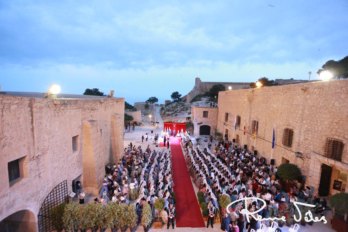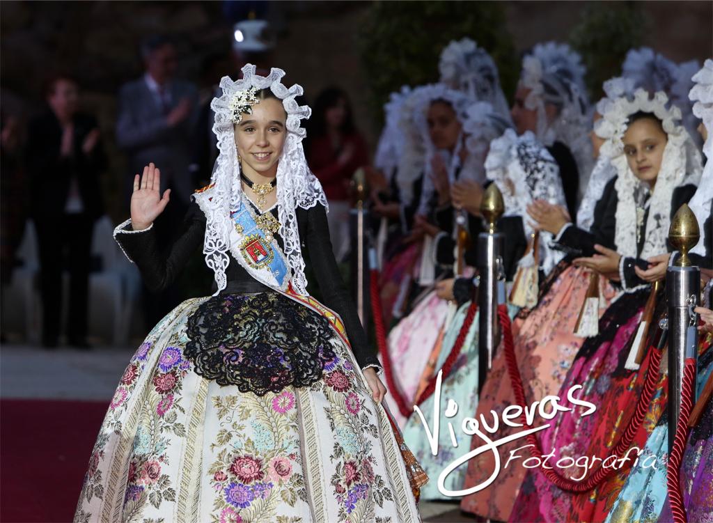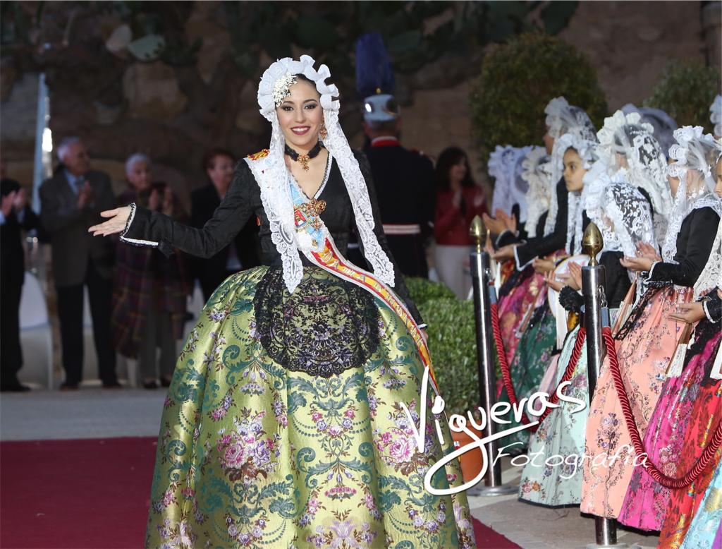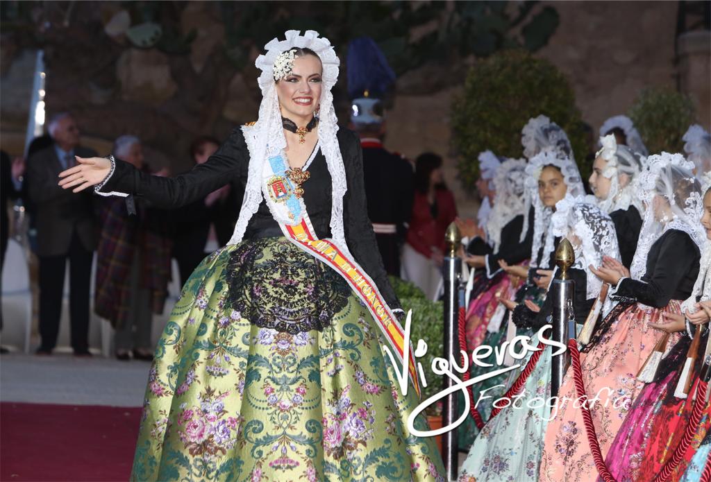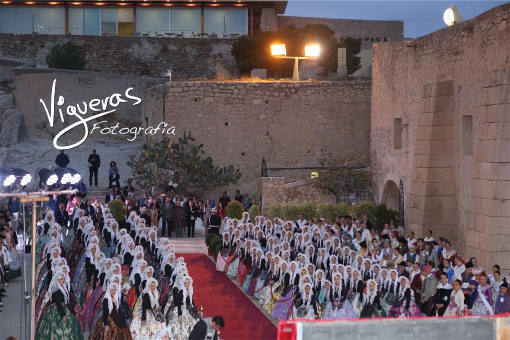 El patio de armas del Castillo de Santa Bárbara ha acogido la tradicional recepción a las candidatas adultas e infantiles a los títulos de bellesa del foc d’Alacant y sus dames d’honor organizada por el Ayuntamiento de Alicante.