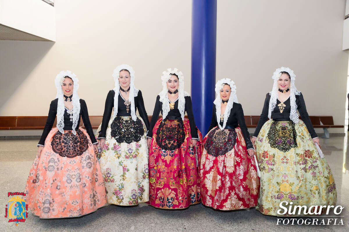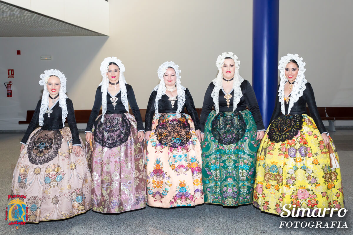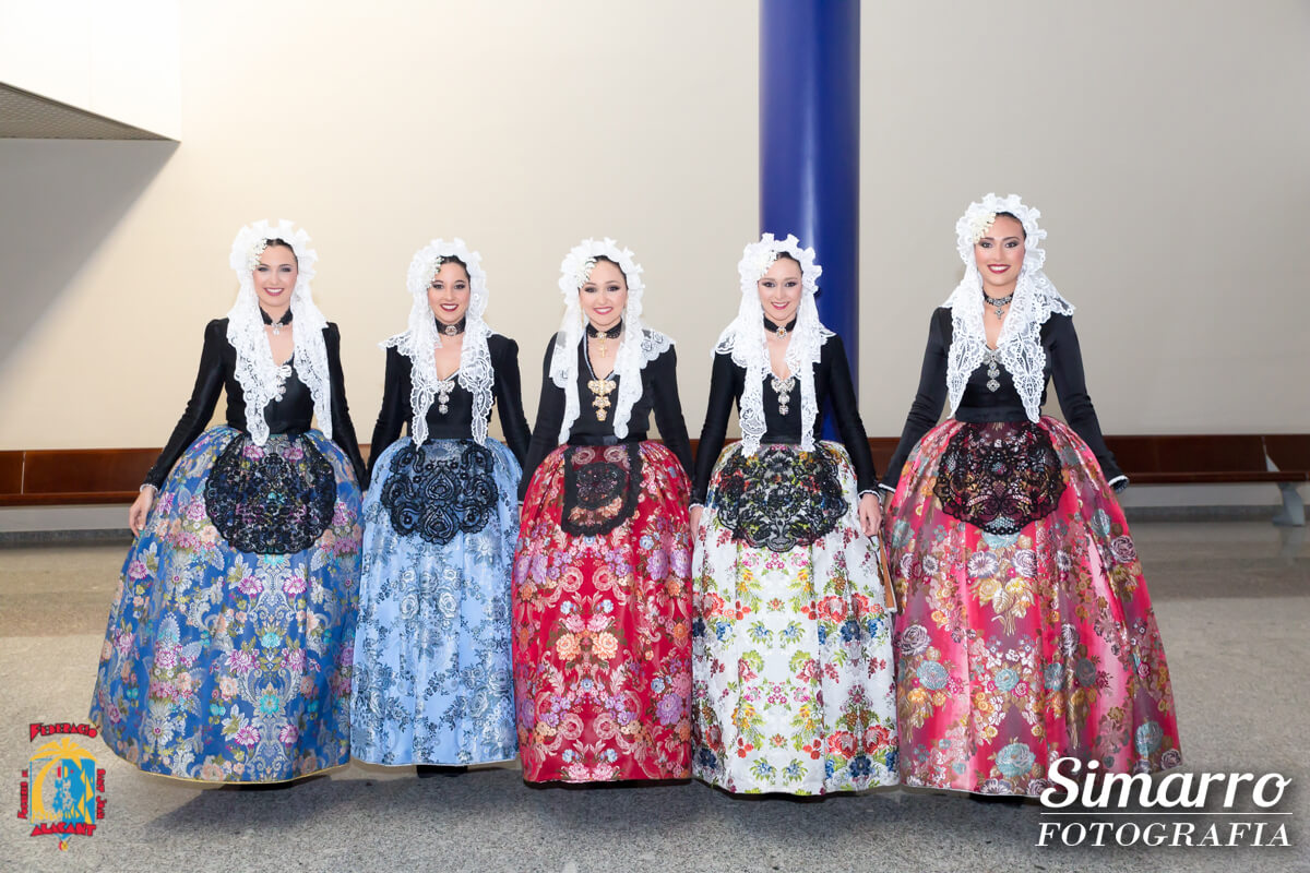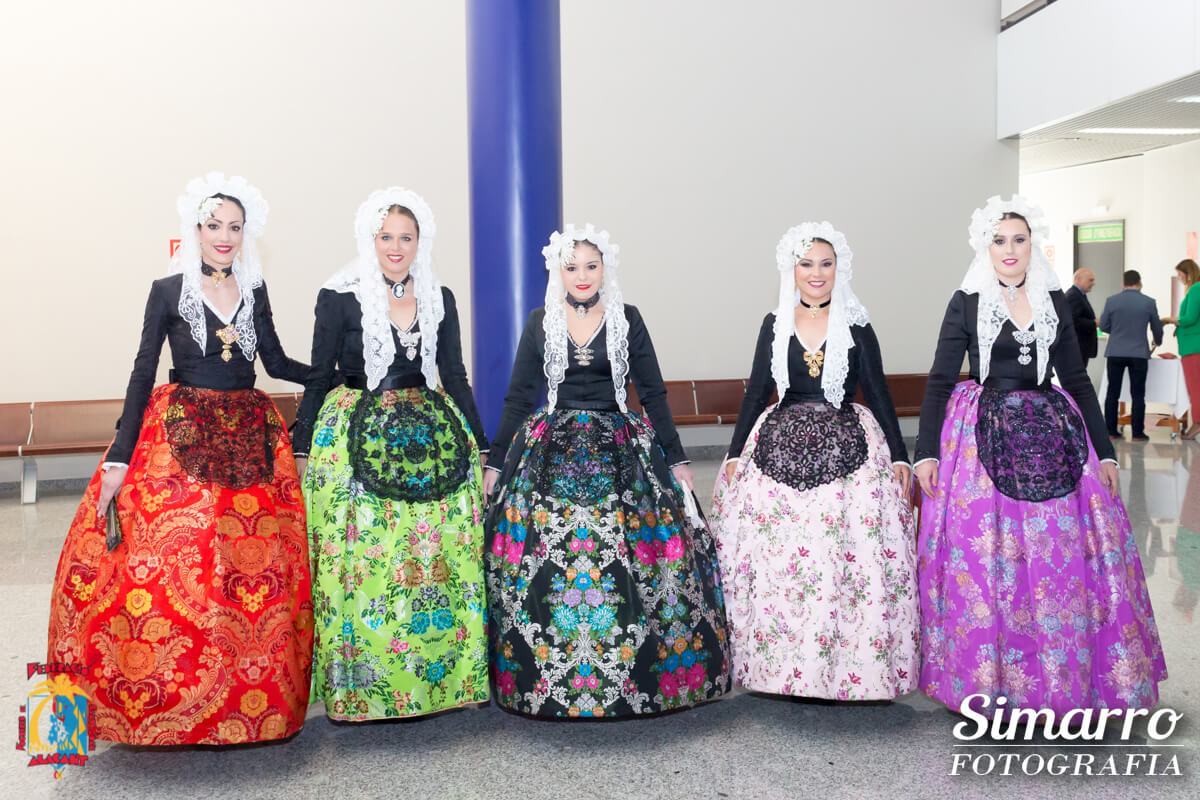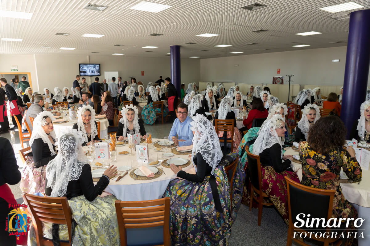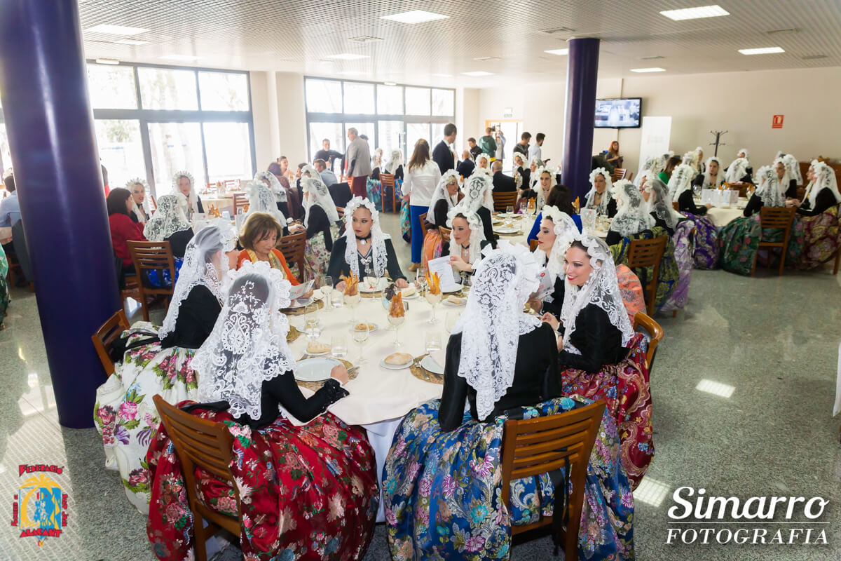 Las mujeres que optan al título de bellesa del foc d’Alacant i les seus dames d’honor 2018 se han reunido en el Centro de Turismo de Alicante (CdT) junto a los miembros del jurado para disfrutar de una jornada gastronómica. Un acto dentro de la agenda de las candidatas adultas y al que han acudido ataviadas con el traje de novia alicantina.
