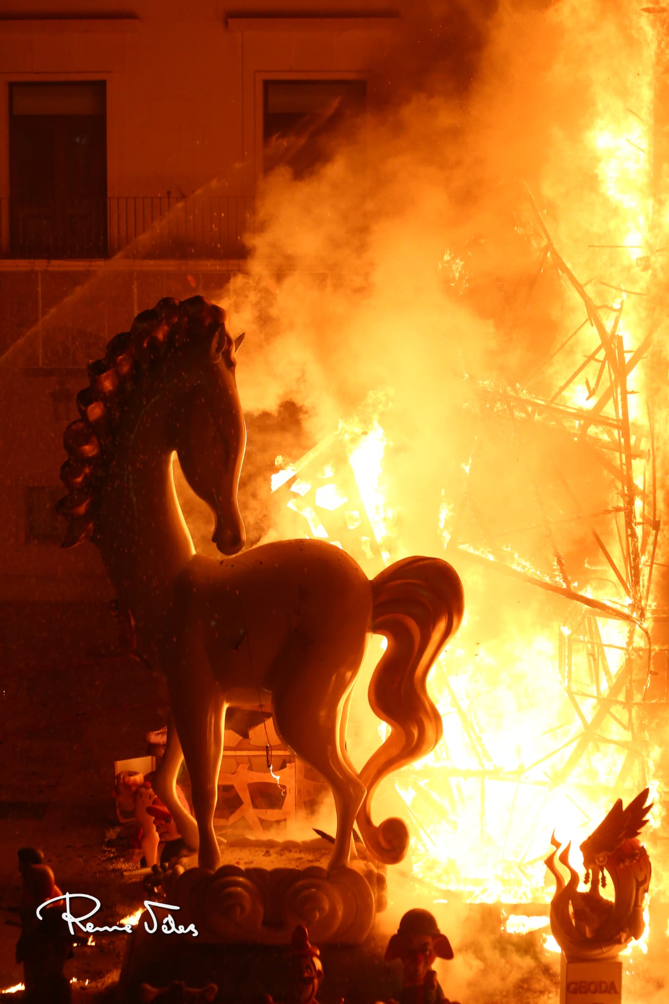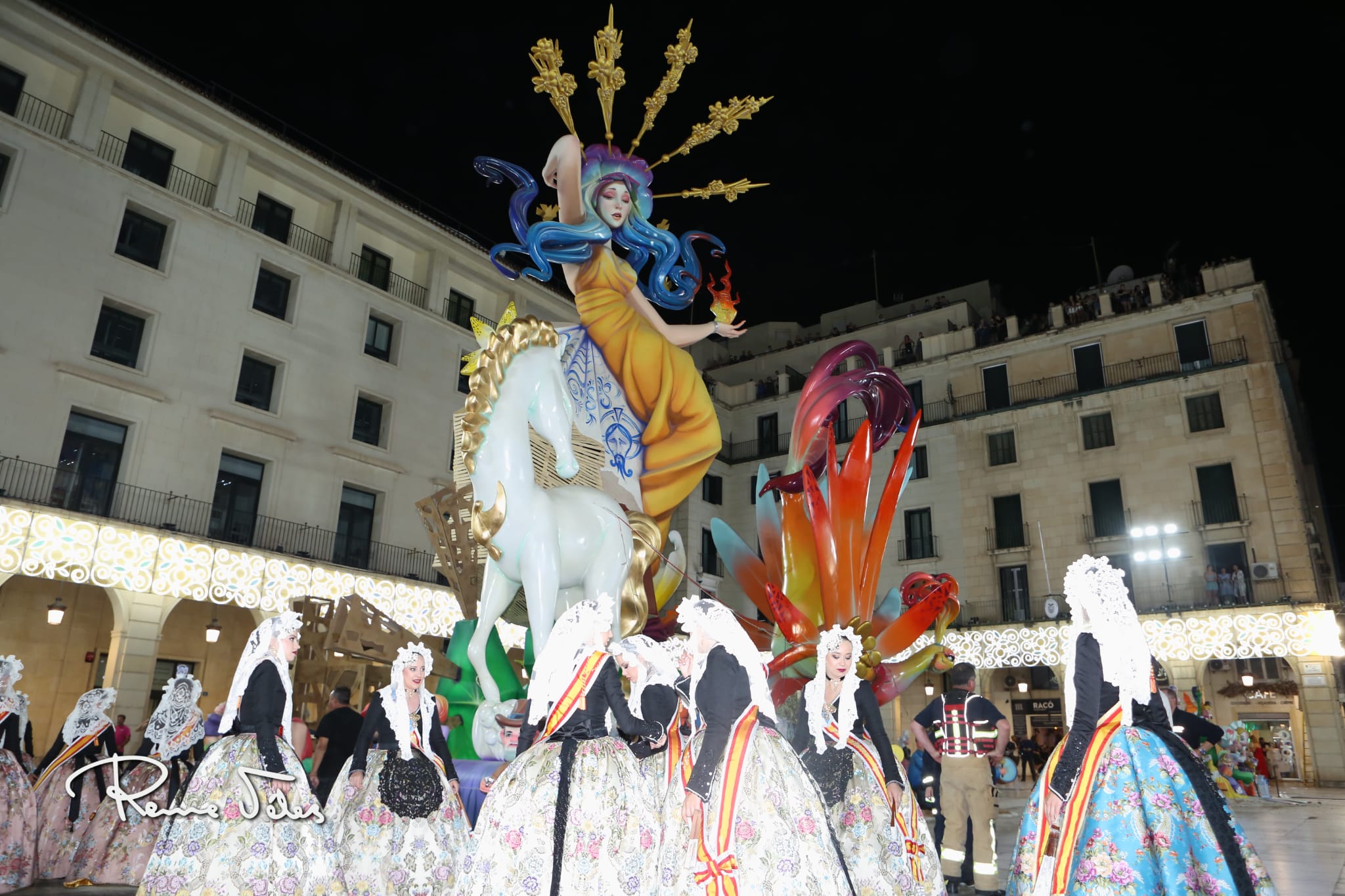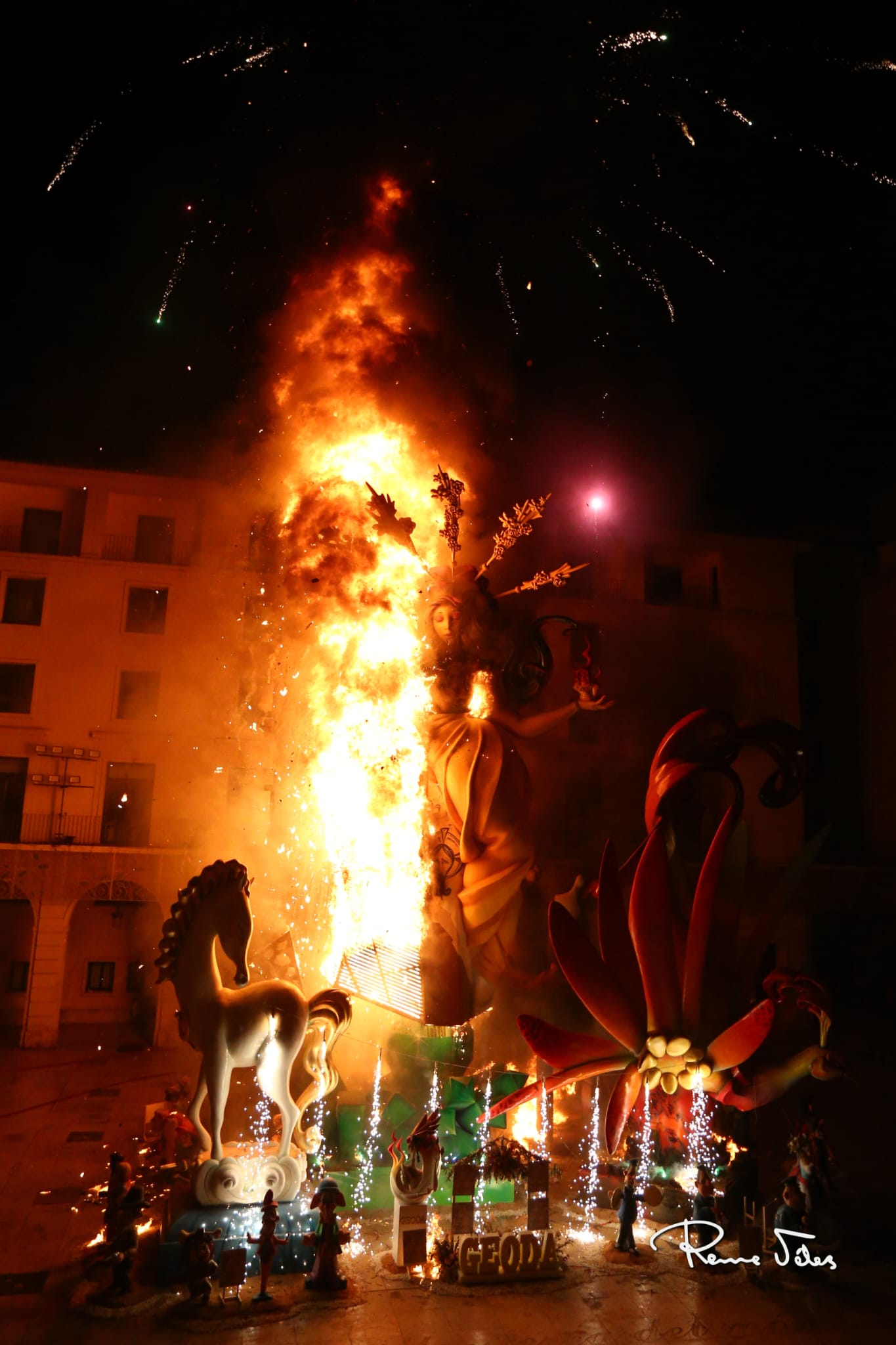 Con ‘D’ Alacant, al món’ convertida en ceniza, comenzó el espectáculo pirotécnico previo a la cremà de ‘Geoda’.