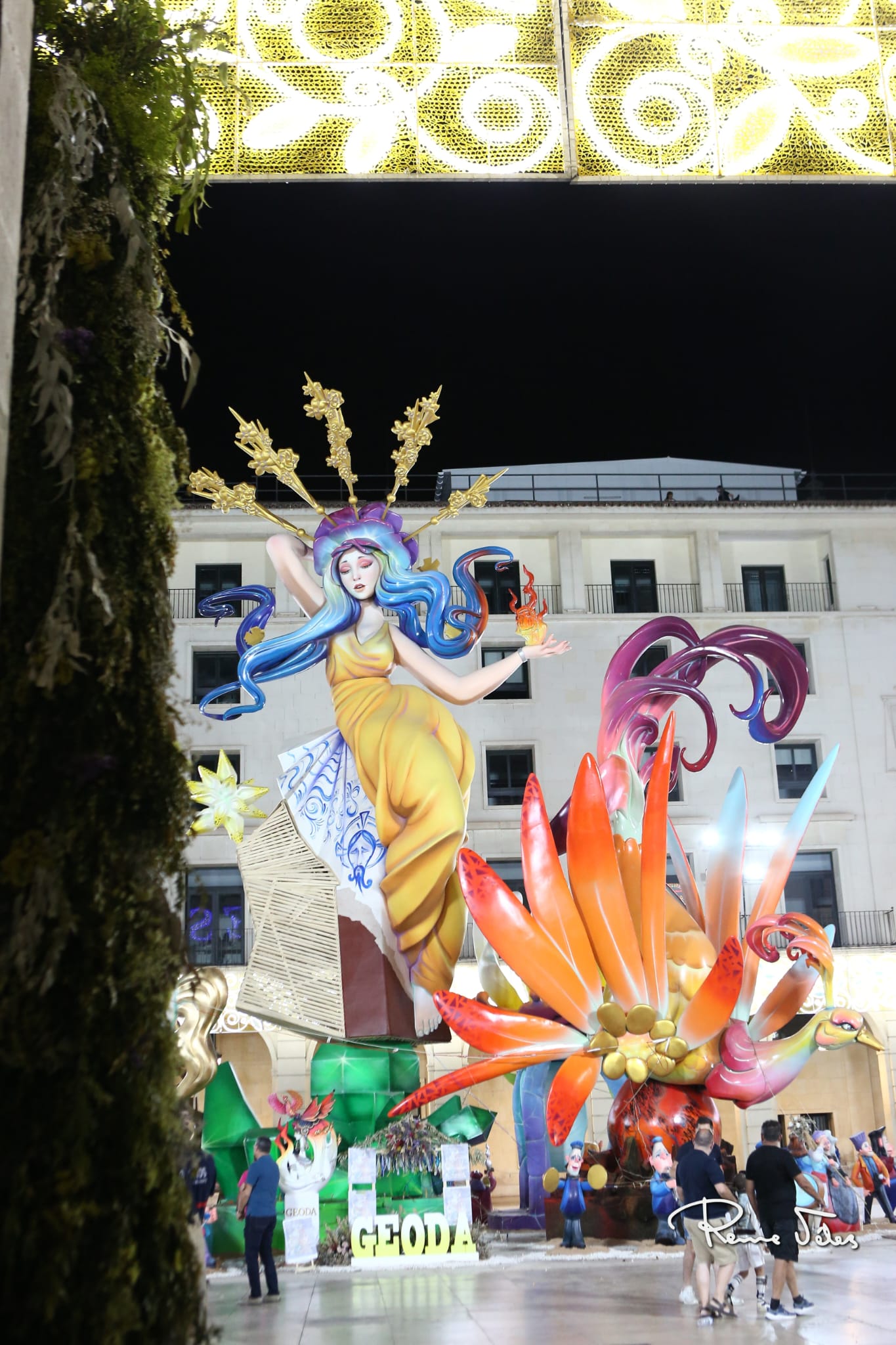 Las cremàs de hogueras oficiales ‘Geoda’ y ‘D´Alacant al món’, obras de Pedro Espadero y Sergio Gómez, pusieron q medianoche el remate de fuego a las multitudinarias #Fogueres23 .