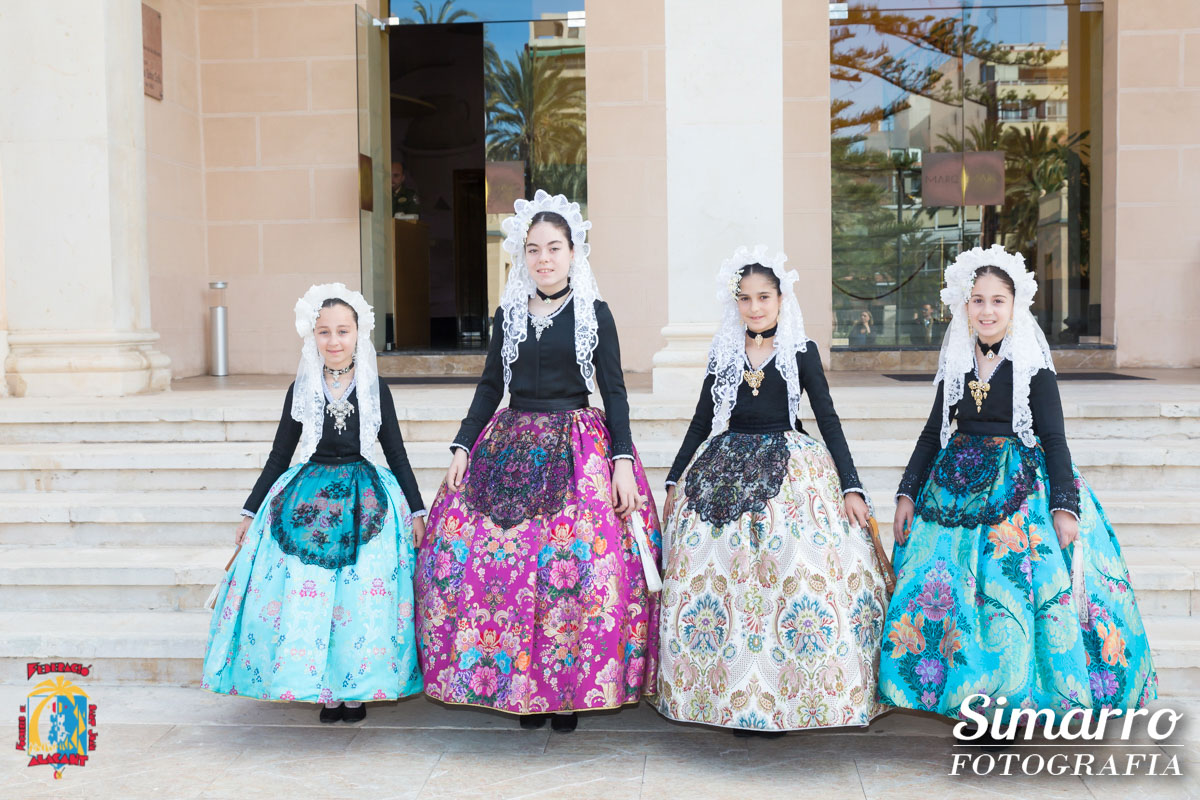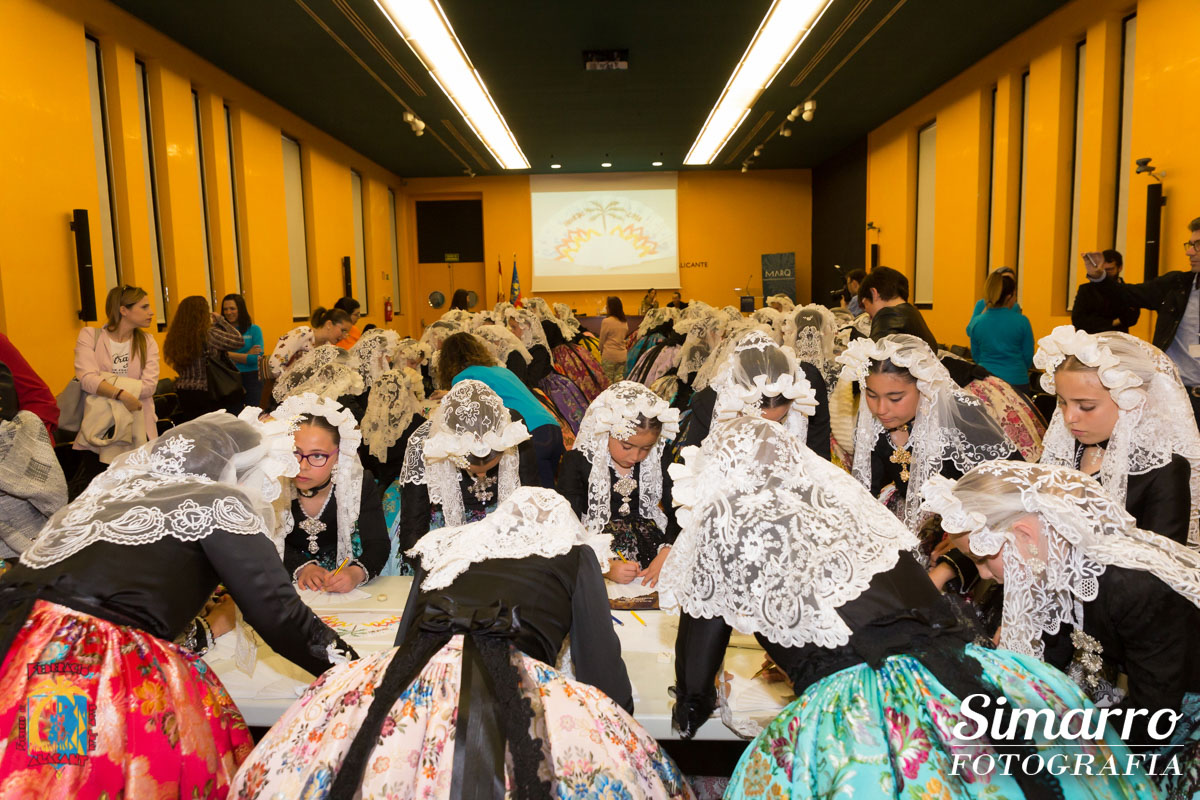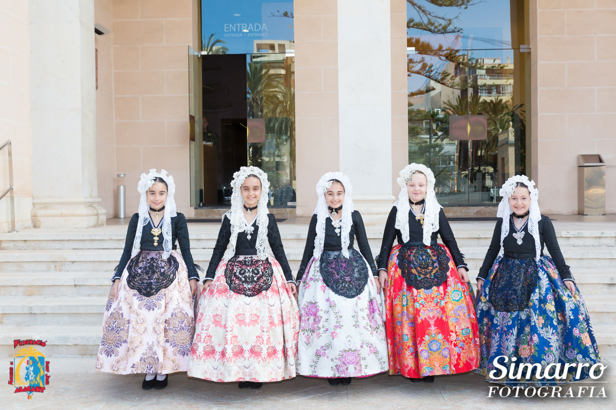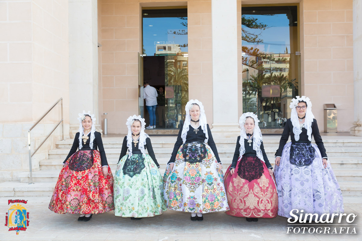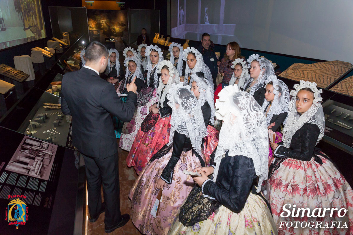 El Museo Arqueológico de Alicante acogió la visita anual de las niñas que optan al título de bellesa del foc infantil d’Alacant i les seues dames d’honor 2018. Ataviadas con el traje de novia alicantina y acompañadas por los miembros del jurado, las candidatas infantiles disfrutaron de una jornada cultural y lúdica en la que conocieron a fondo el museo alicantino y disfrutaron de unas divertidas actividades dedicas a ellas. Tras esta visita, las niñas y el jurado se trasladaron hasta el restaurante El Sorell.
