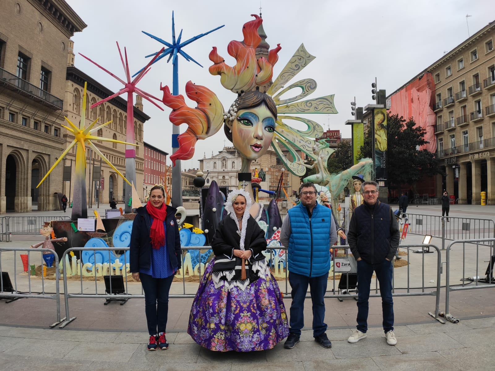 Alicante llenará el centro de Zaragoza, desde este jueves y hasta el sábado, con la luz, el color y la alegría de sus tradicionales fiestas de Les Fogueres de Sant Joan. Este acto de homenaje, promoción e intercambio turístico-cultural entre las dos ciudades ha sido presentado esta mañana en la plaza del Pilar por la vicealcaldesa de Zaragoza, Sara Fernández, y su homóloga alicantina, Mari Carmen Sánchez, quienes han estado acompañadas por el concejal de Fiestas de Alicante, Manuel Jiménez; la Bellesa del Foc d’Alacant, Marina Niceto; la presidenta de la Federació de les Fogueres de Sant Joan, Toñi Martín-Zarco y el gerente del patronato de Turismo Costa Blanca, José Mancebo.