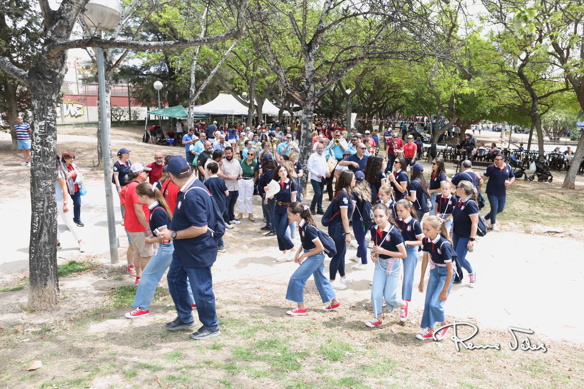 La banda de música Los Claveles ha acompañado a les belleses del foc y sus dames d’honor en el tradicional pasacalles que ha recorrido el parque acompañadas de la concejala de Fiestas, Mª Carmen Sánchez, y otros miembros de la Corporación Municipal y y los componentes de la Federació de les Fogueres de Sant Joan.