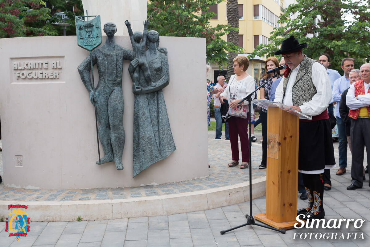 Les Fogueres del 90 aniversario ya han comenzado. El pasado 1 de junio, la Fiesta celebraba el tradicional Pregón en la plaza del Ayuntamiento de Alicante. Como cada año, el acto del Pregón comenzaba con el Homenaje a los foguerers i barraquers fallecidos; los festeros se reunieron ante el monumento dedicado a todos aquellos que amaron la fiesta de Fogueres y ya no están entre nosotros. El encargado de recordar y dedicar unas palabras a todos ellos fue Raúl Baeza, ex presidente de la Comisión Gestora.