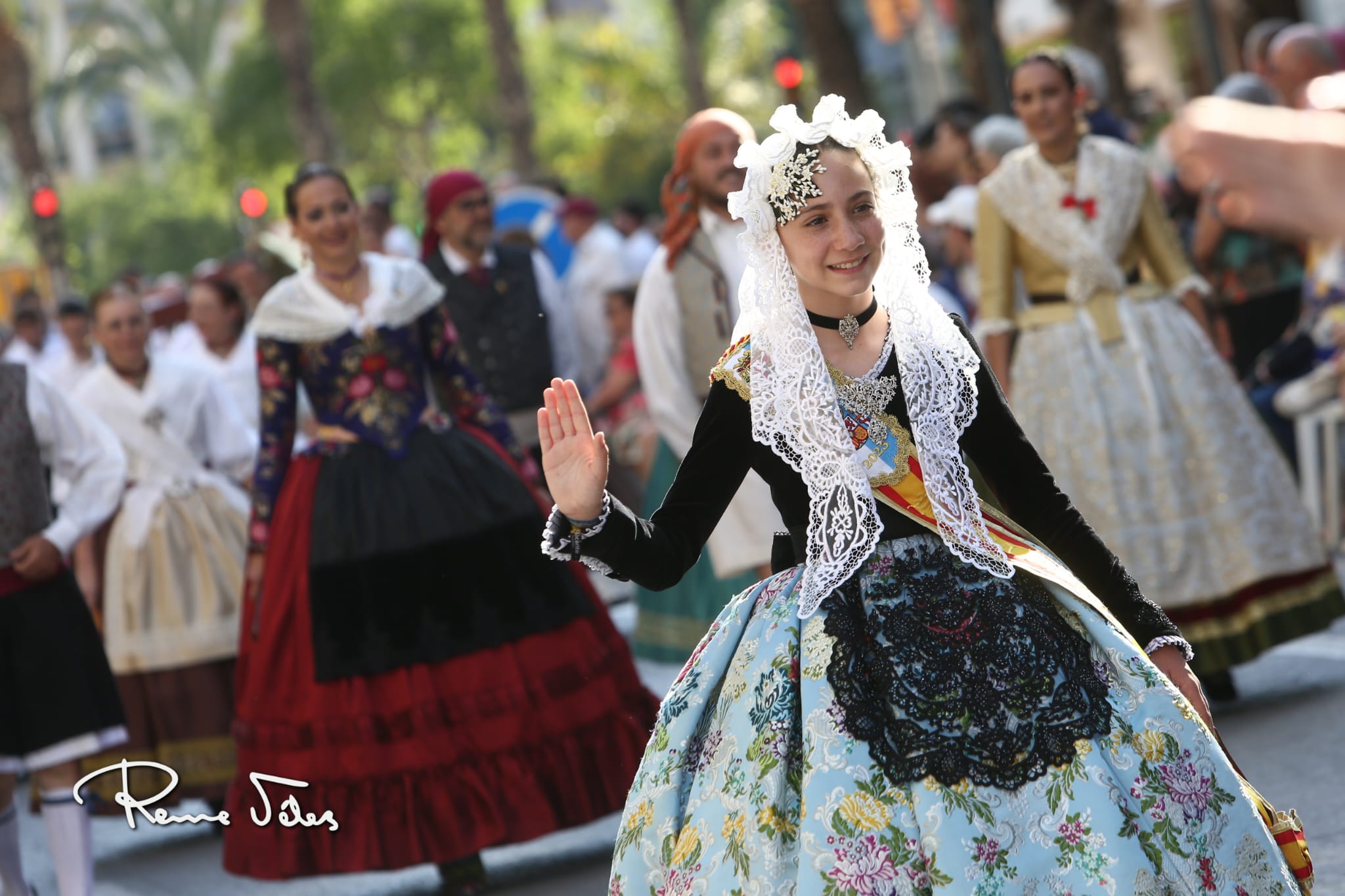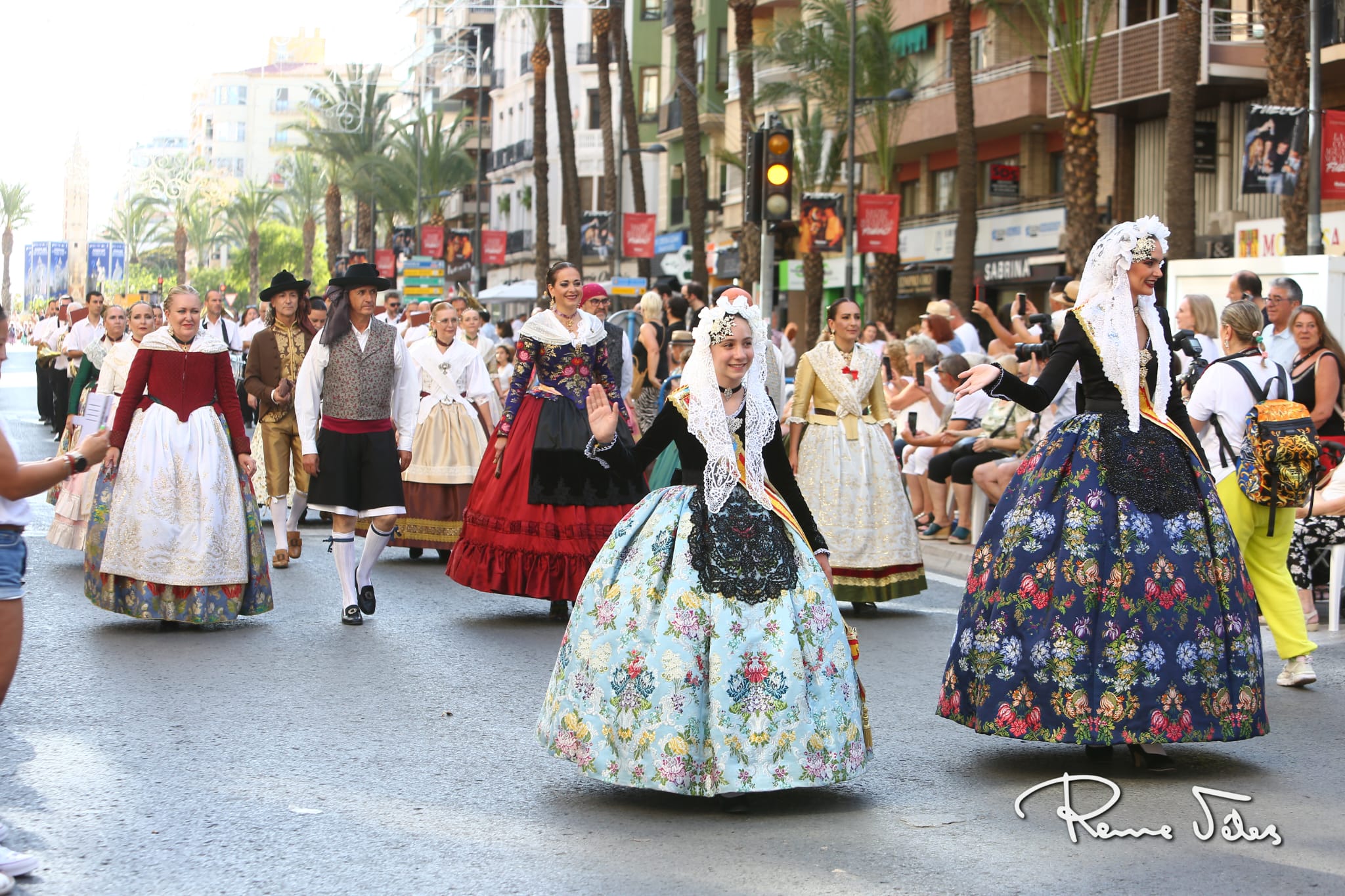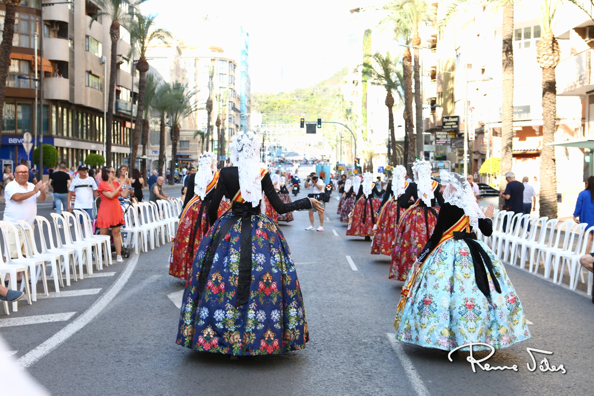 Las encargadas de abrir este desfile fueron les belleses del foc d’ Alacant, Belén Mora e Inés Llavador, sus dames d’honor; la presidenta de la Federació de les Fogueres de Sant Joan, Toñi Martín-Zarco y miembros de la Federació de les Fogueres de Sant Joan acompañados de la Banda Sinfónica Municipal.