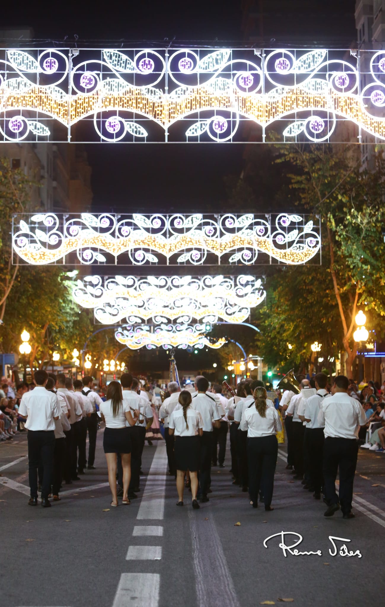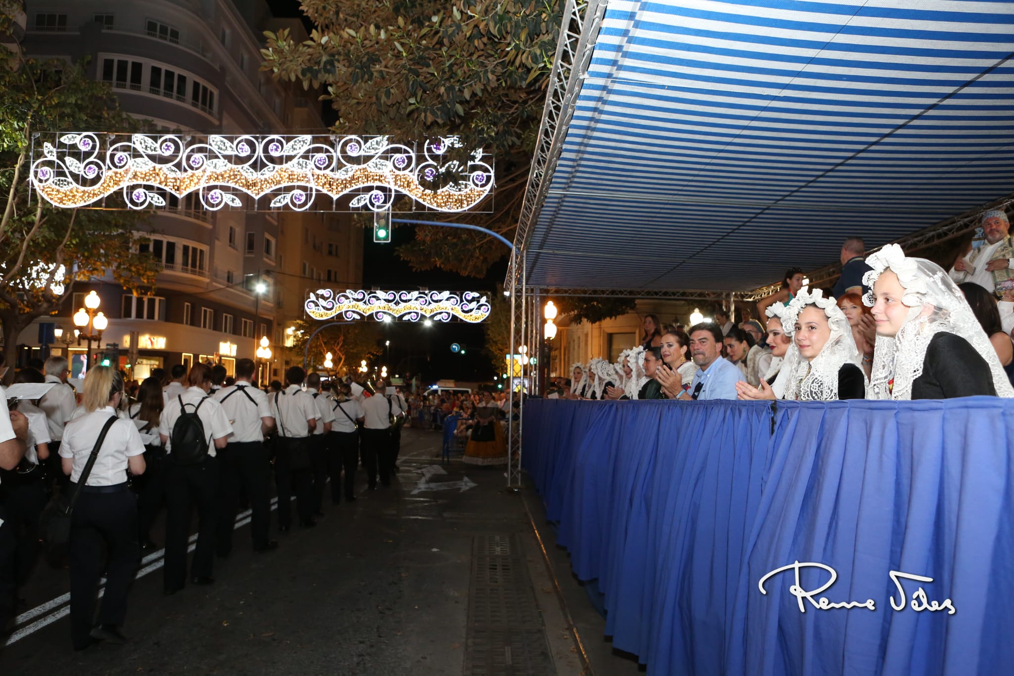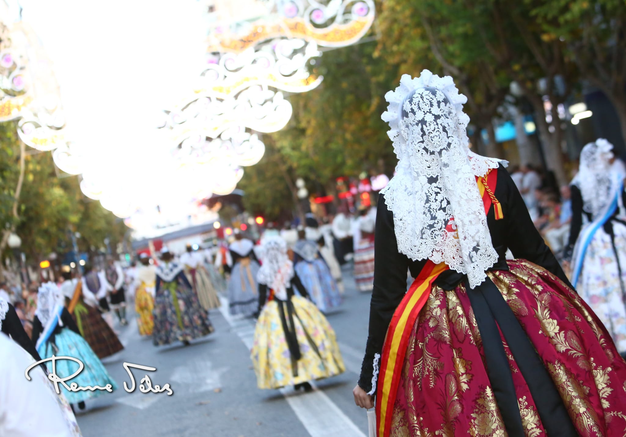 Las encargadas de abrir este desfile fueron les belleses del foc d’ Alacant, Belén Mora e Inés Llavador, sus dames d’honor; la presidenta de la Federació de les Fogueres de Sant Joan, Toñi Martín-Zarco y miembros de la Federació de les Fogueres de Sant Joan acompañados de la Banda Sinfónica Municipal.