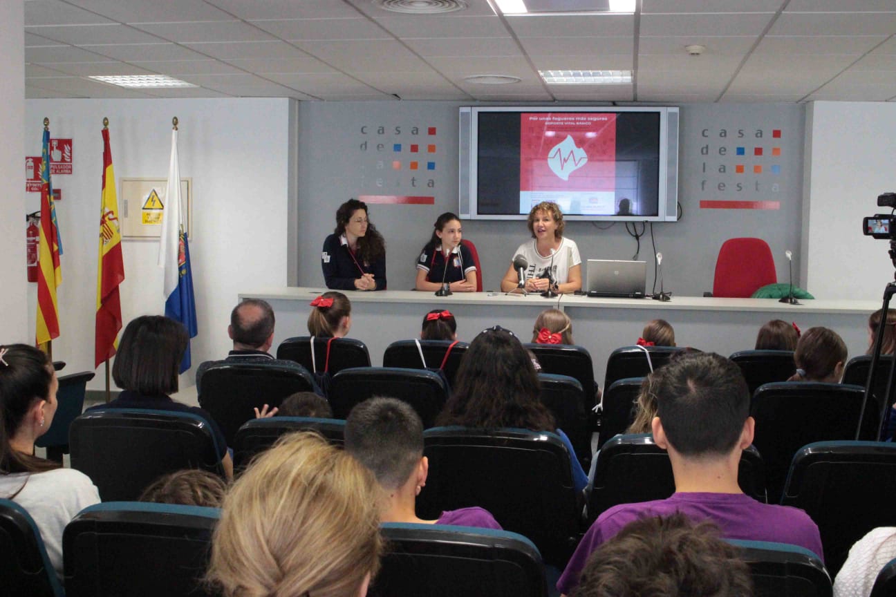 El Colegio de Enfermería de Alicante, a través de su Escuela de RCP, cuyo coordinador es el vicepresidente colegial, Francisco Gómez Vitero, impartió el pasado sábado una jornada de formación en técnicas de reanimación cardiopulmonar y primeros auxilios (pequeñas heridas, quemaduras, atragantamientos…) a los miembros del colectivo de hogueras infantiles de la Federació de les Fogueres de Sant Joan. Está actividad ha tenido lugar en la Casa de la Festa de Alicante y contó con la asistencia de la presidenta del Colegio de Enfermería de Alicante, Montserrat Angulo, del vicepresidente de la entidad, Francisco Gómez Vitero, de la delegada de Fogueres Infantils, Ana Luisa Pérez Santacruz, y de la Bellesa del Foc Infantil, Inés Llavador, y sus dames d’honor.