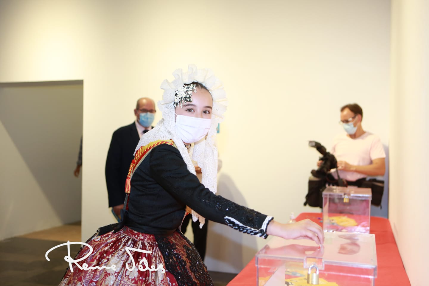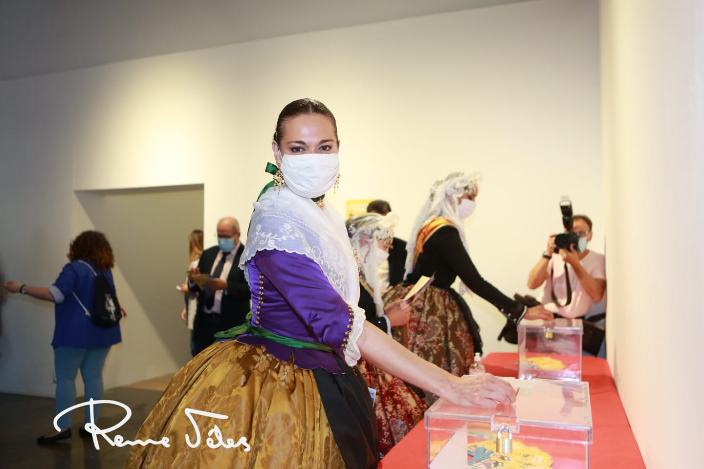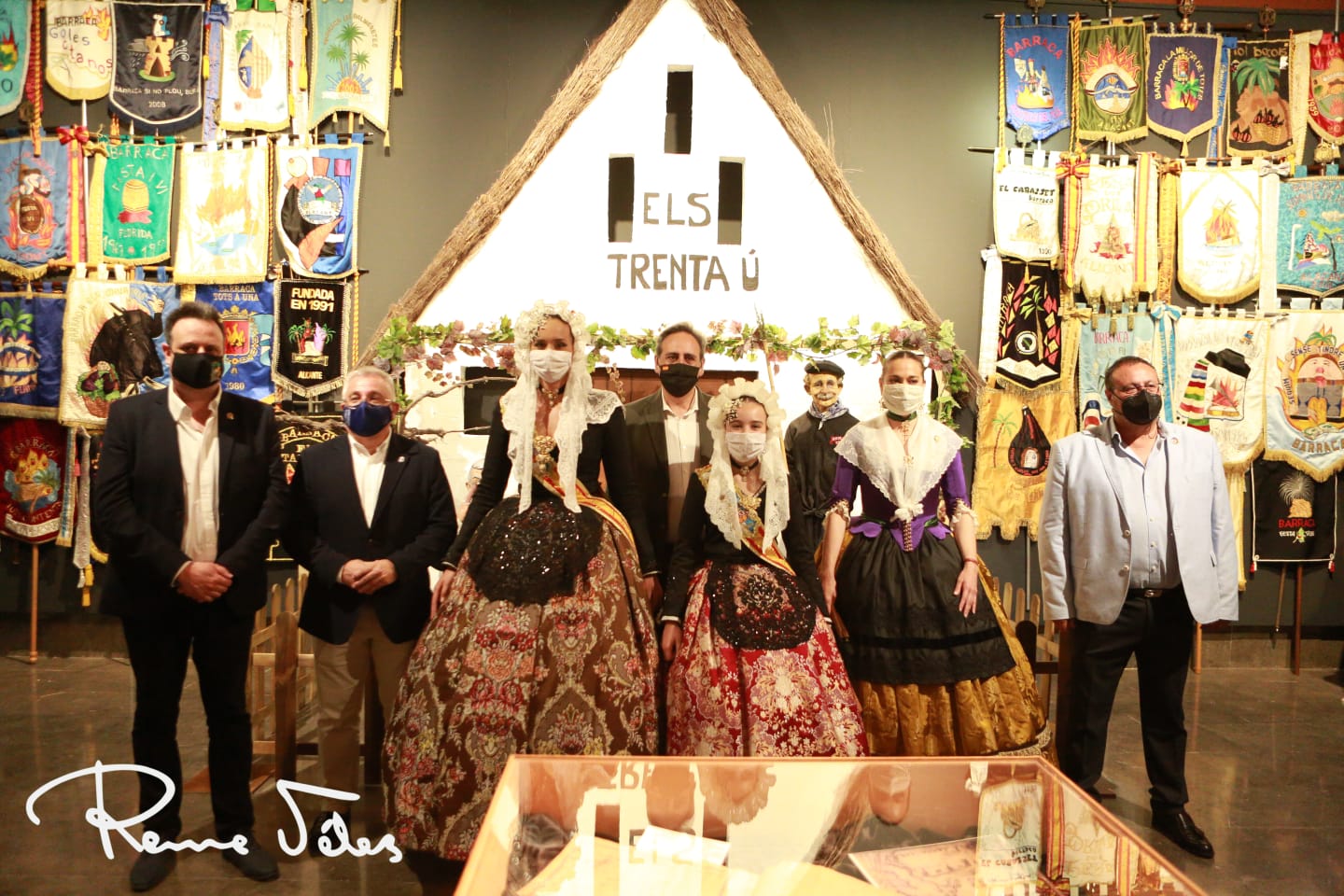 Al acto de inauguración han acudido les belleses del foc d’Alacant, Isabel Bartual Fernández y Noelia Vinal Rondón, acompañadas por sus dames d’honor, autoridades como el concejal de fiestas, Manuel Jiménez; la presidenta de la Federació de les Fogueres de SAnt Joan, Toñi Martí-Zarco; el maestro mayor del Gremio de Artistas, Joaquín Rubio, y miembros de la Federació.