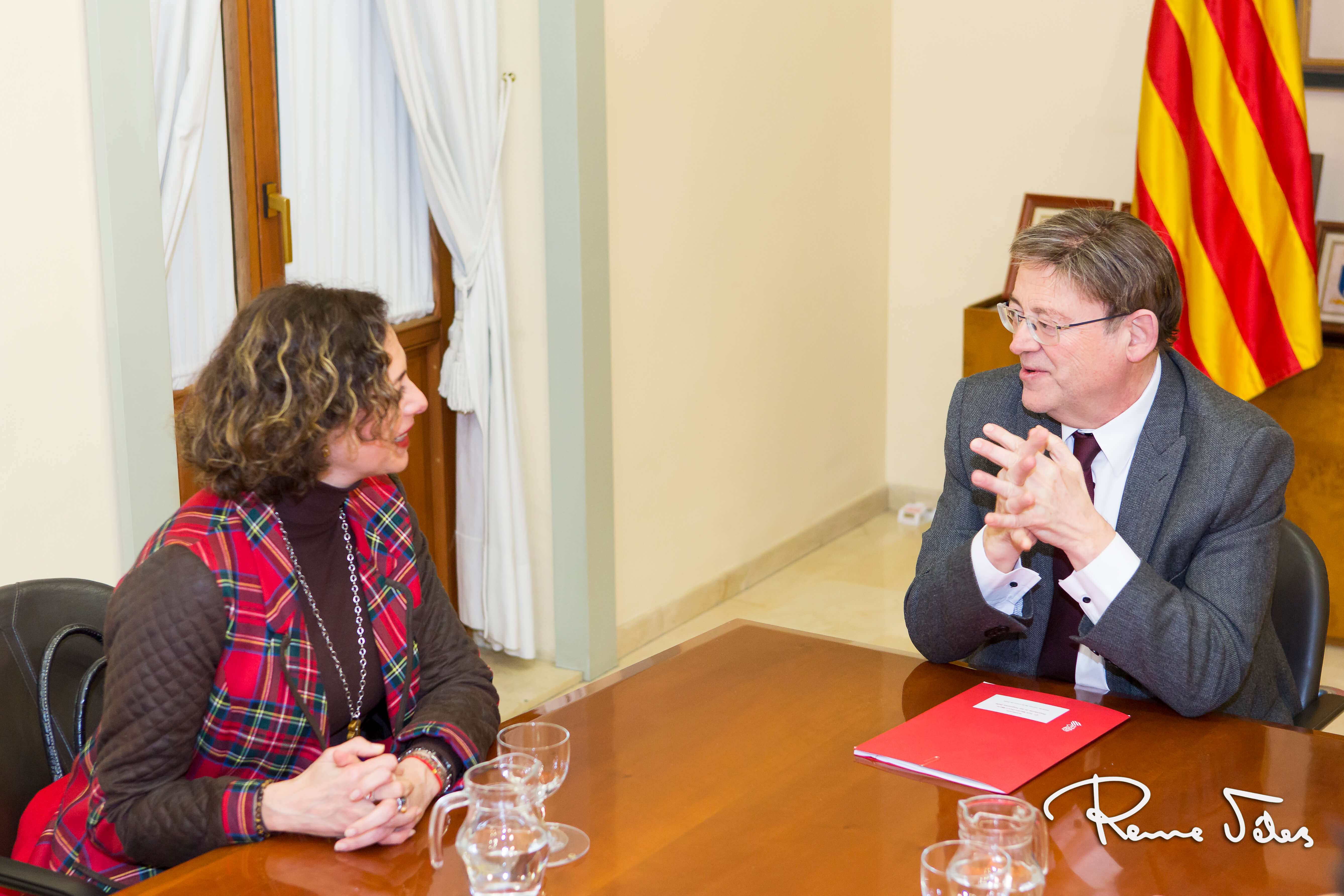 La presidenta de la Federació de les Fogueres de Sant Joan, Antonia Martín-Zarco, se ha reunido hoy con el presidente de la Generalitat, Ximo Puig. En esta primera toma de contacto entre el presidente y la nueva presidenta se encontraba también parte de la directiva de la Federació.