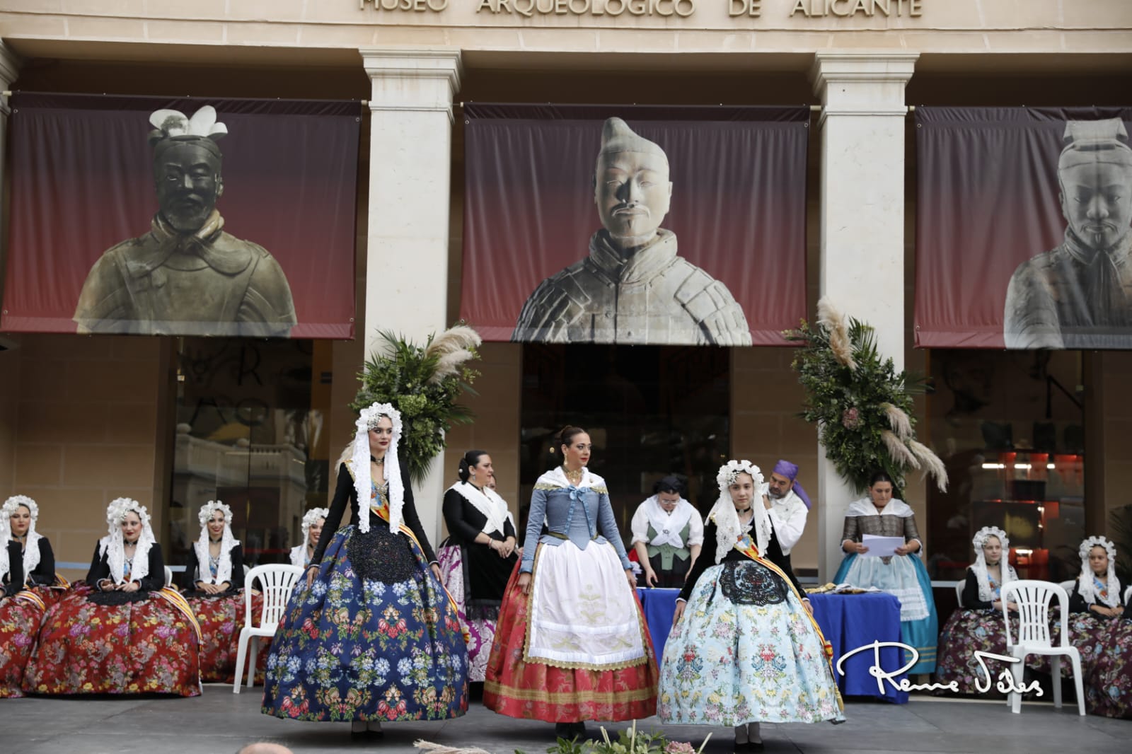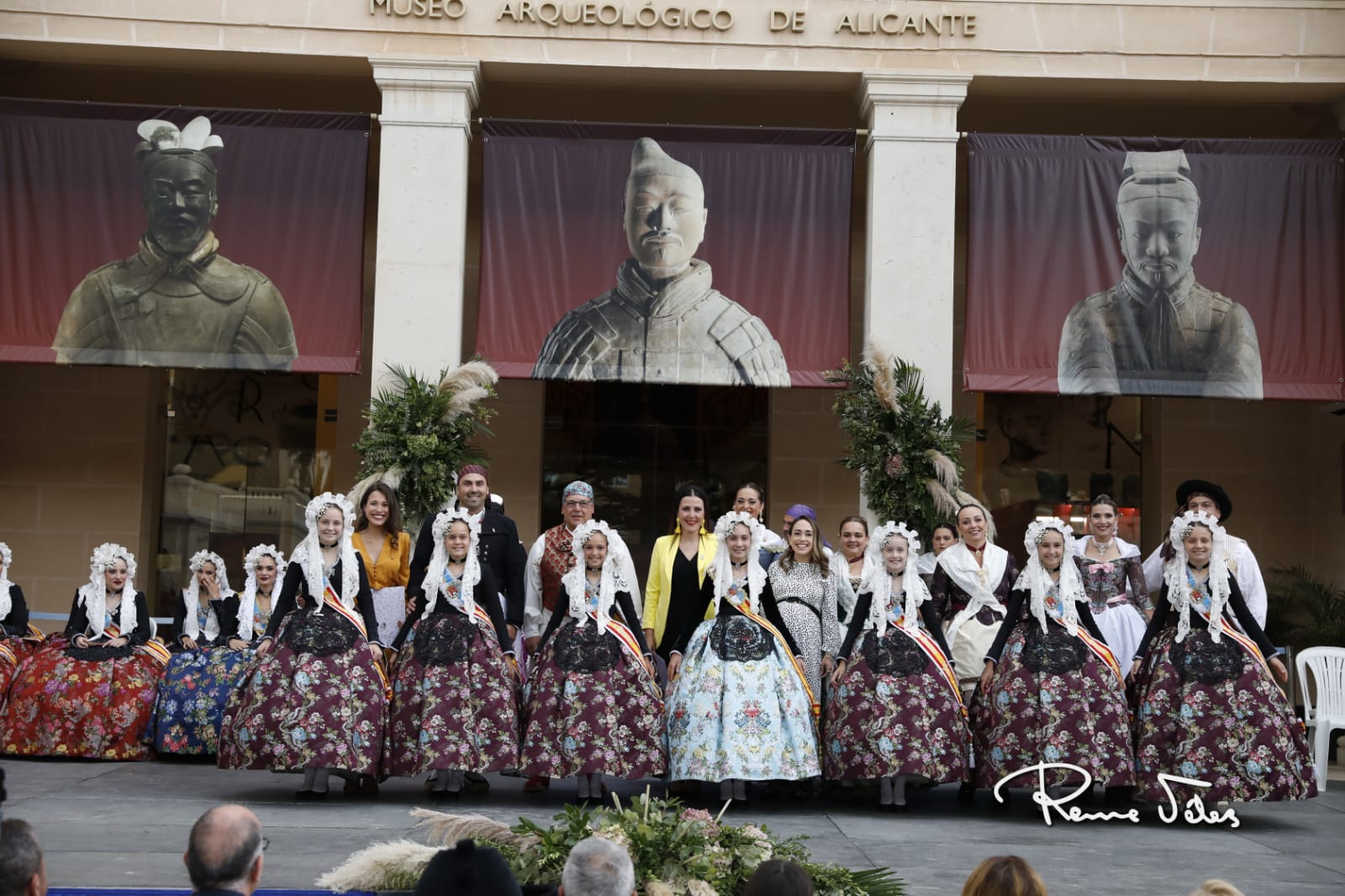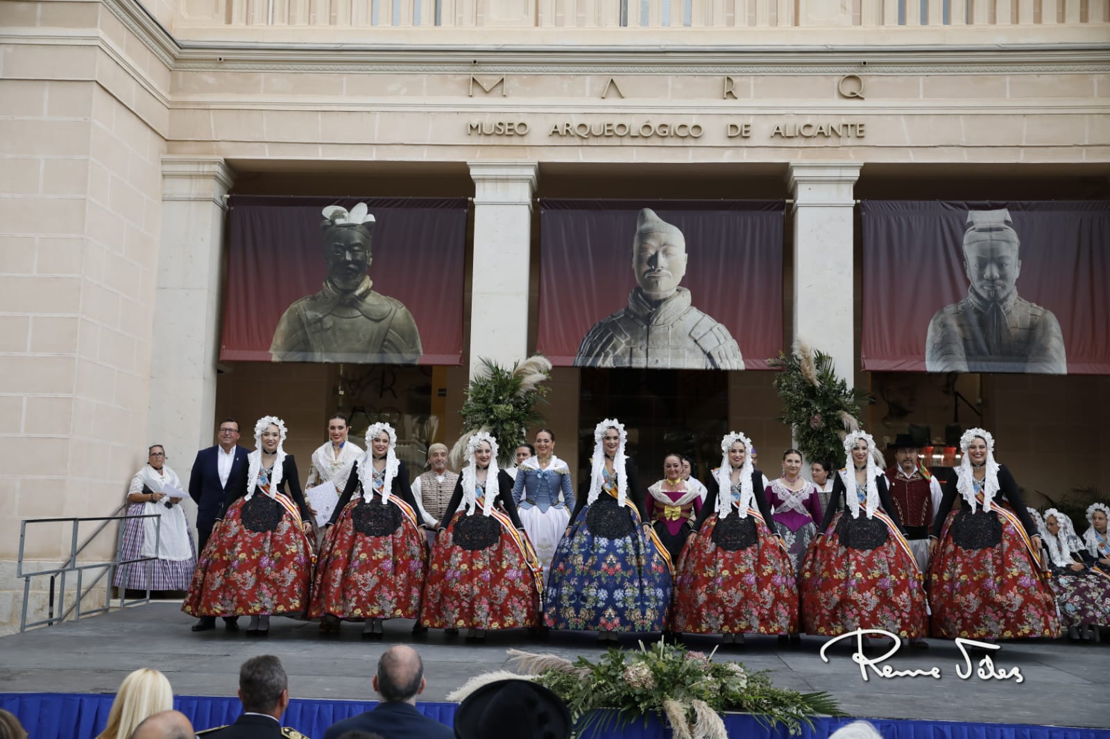El acto, que se desarrolló en los jardines del MARQ, contó con les belleses del foc d’Alacant, Belén Mora e Inés Llavador, sus dames d’honor y la presidenta de la Federació de les Fogueres de Sant Joan, Toñi Martín-Zarco, quienes fueron las encargadas de imponer los emblemas.