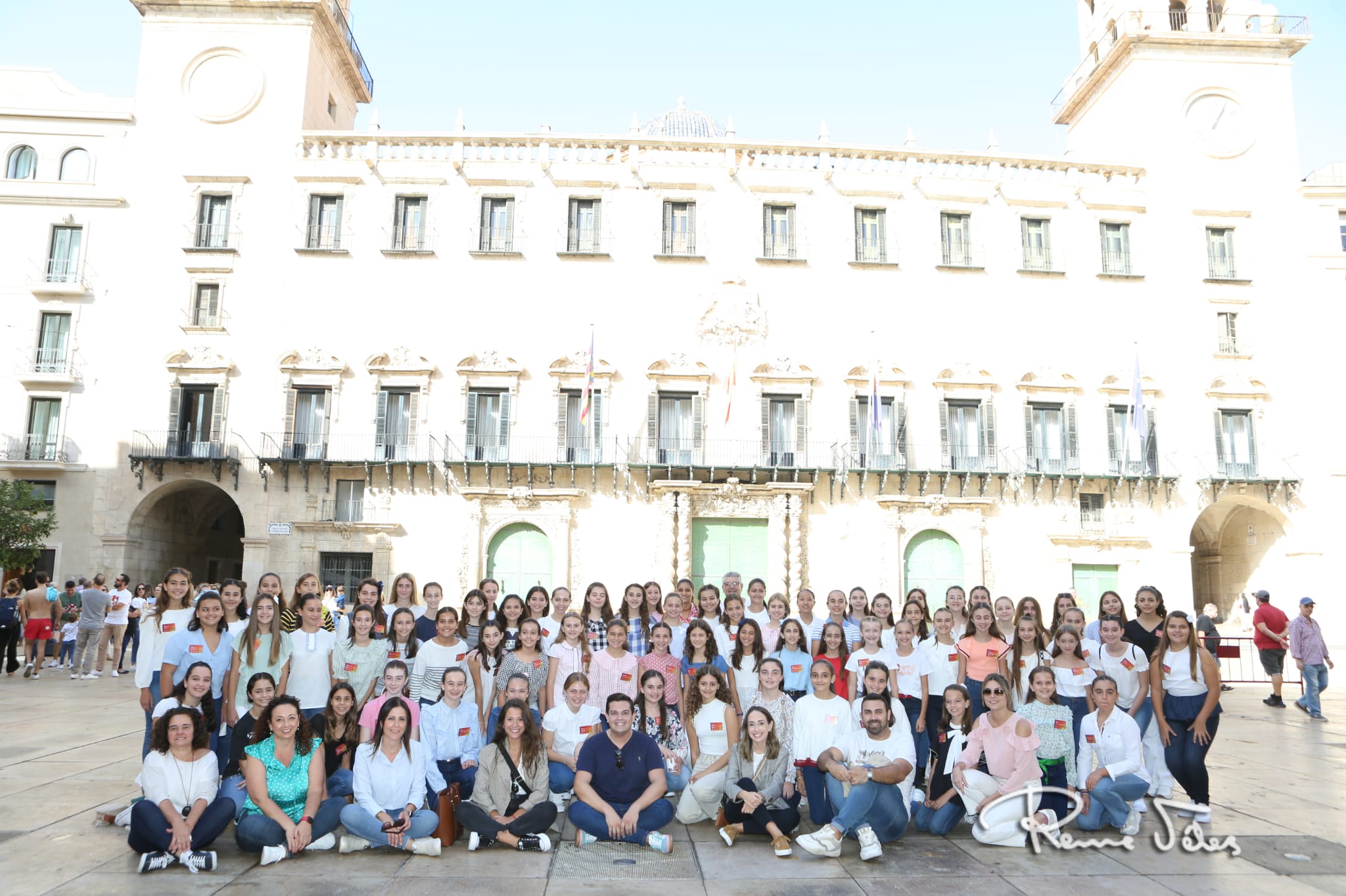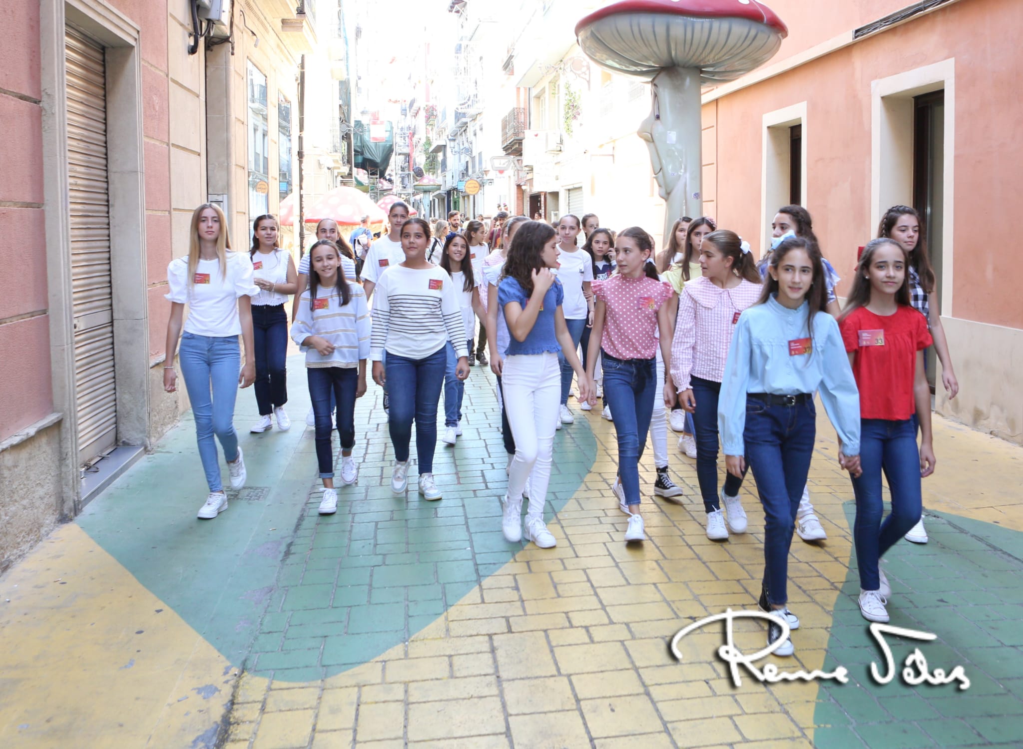 Las 76 niñas han comenzado el recorrido por Alicante en la plaza del Ayuntamiento, para después desplazarse al Paseito Ramiro, Plaza del Mar, Explanada, calle San Francisco, Plaza Correos, Portal de Elche, Rambla o San Nicolás.