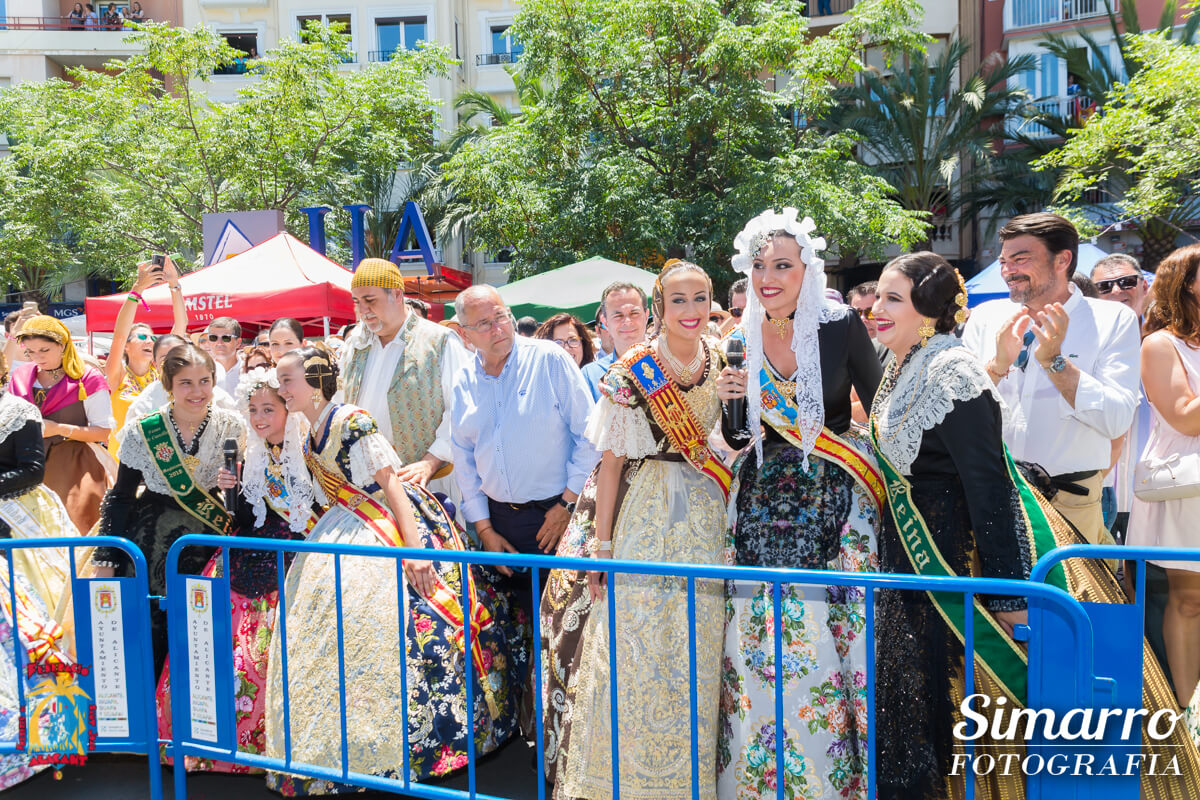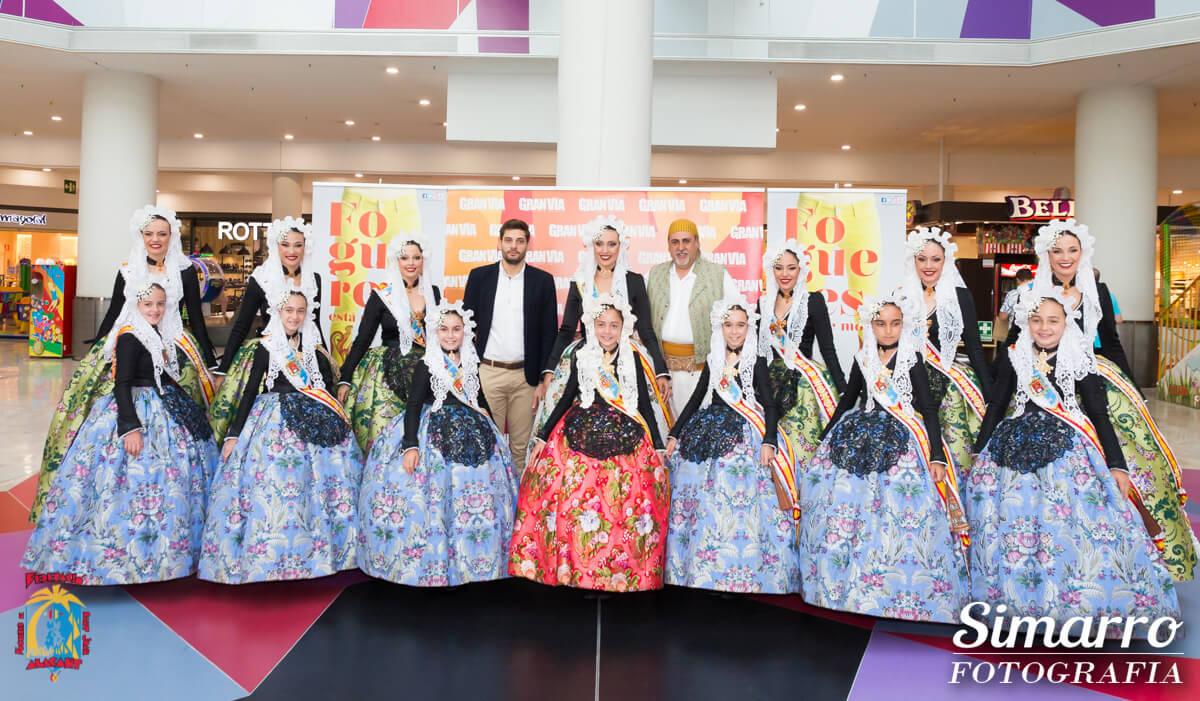 Les belleses del foc i les dames d’honor han comenzado la mañana de Fogueres visitando a uno de nuestros patrocinadores, el Centro Comercial Gran Vía; allí les ha recibido Javier Montejano, gerente del Centro Comercial, quien les ha acompañado a lo largo del desfile. Tras esta visita, las 14 representantes junto a Manolo Jiménez, presidente de la Federació han acudido a los tradicionales homenajes dedicados a Gabriel Miró y José María, para finalizar la mañana con la mascletà en la Plaza de los Luceros.