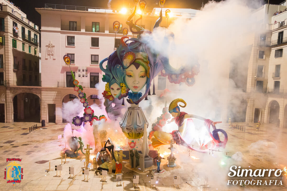 Les Fogueres 2018 culminaron con la Palmera lanzada desde el Castillo de Santa Bárbara y la cremà de los monumentos oficiales; punto de inicio de la cremà del resto de monumentos de la ciudad que llenó de pólvora y fuego todos los barrios de Alicante.
