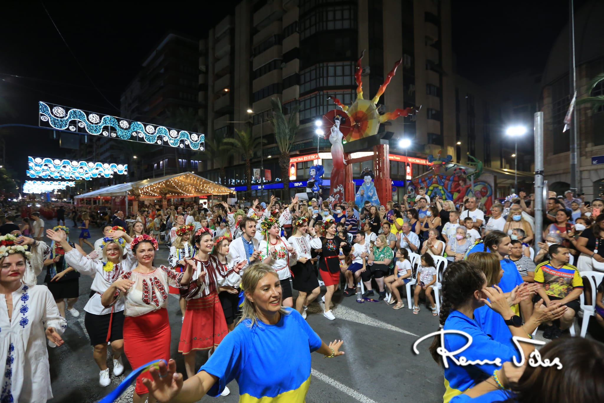 El centro de Alicante se llenó de luz, del color de la indumentaria, de danzas, de música y de gastronomía. Cerró el desfile Ucrania.