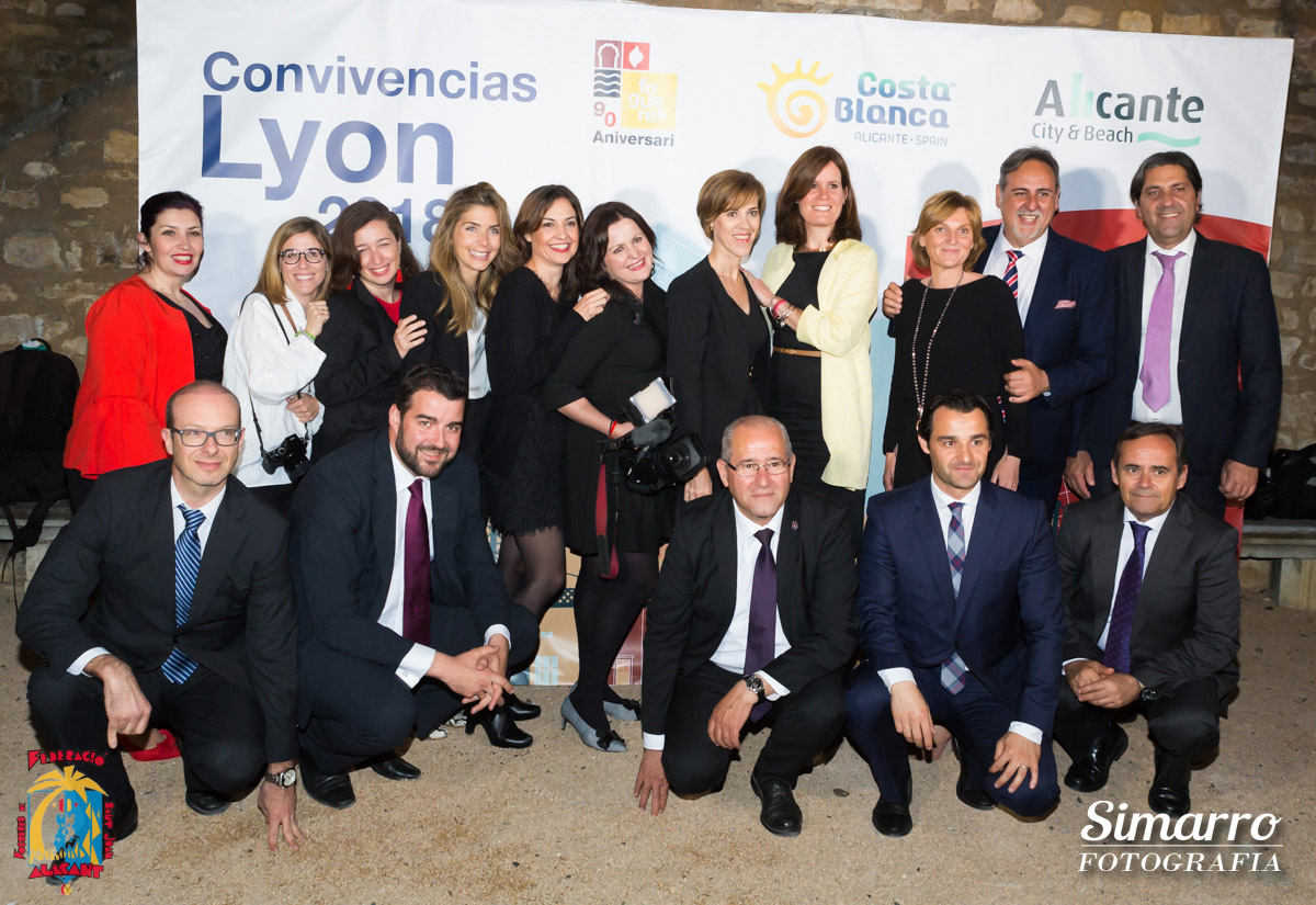 Tras el reparto de habitaciones, los asistentes a Lyon vistieron sus mejores galas para asistir a la cena en el Chateau Saint Bernard al finalizar la cena, llegó el turno de parlamentos oficiales donde el presidente de la Federació de Fogueres, Manolo Jiménez, agradeció a todas las autoridades que han hecho posible esta promoción en Lyon, a la cena asistió, la directora de la OET de París, Elena Valdés, el Cónsul General de España en León, Pablo Benavides, el Concejal de fiestas de Alicante, José Ramón González, el Diputado de turismo y vicepresidente de la Diputación de Alicante, Eduardo Dolón y la directora el Instituto Cervantes, Juana Gil.