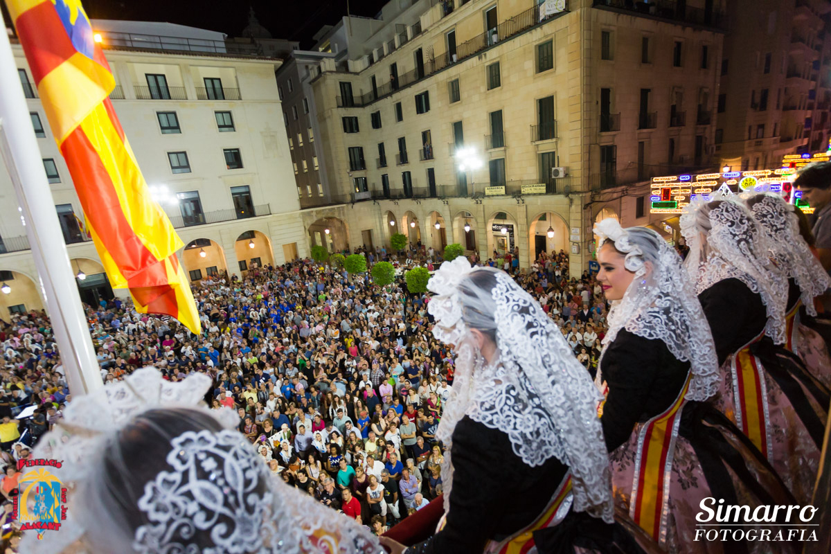 Minutos antes del desfile, la Plaza de España se ha inundado de festeros para homenajear a los foguerers i barraquers que ya no están. Amparo Tresáncoras de la Foguera Séneca Autobusos ha sido la mantenedora de un acto cargado de emoción y recuerdo. Tras el homenaje, Belleses, Dames, Presidentes y Banderines de las diferentes comisiones de Fogueres han desfilado hasta la Plaza del Ayuntamiento de Alicante. Los Nanos i Gegants y las collas Benacantil, San Blas, L´Émbolic, Sant Antoni, la Canya, el Rebuig y los Amuntegats han sido los encargados de amenizar todo el recorrido. Sofía Escoda y Martina Núñez, Belleses del Foc han cerrado el desfile junto a sus Dames d´Honor y los miembros de la Federació de les Fogueres de Sant Joan.