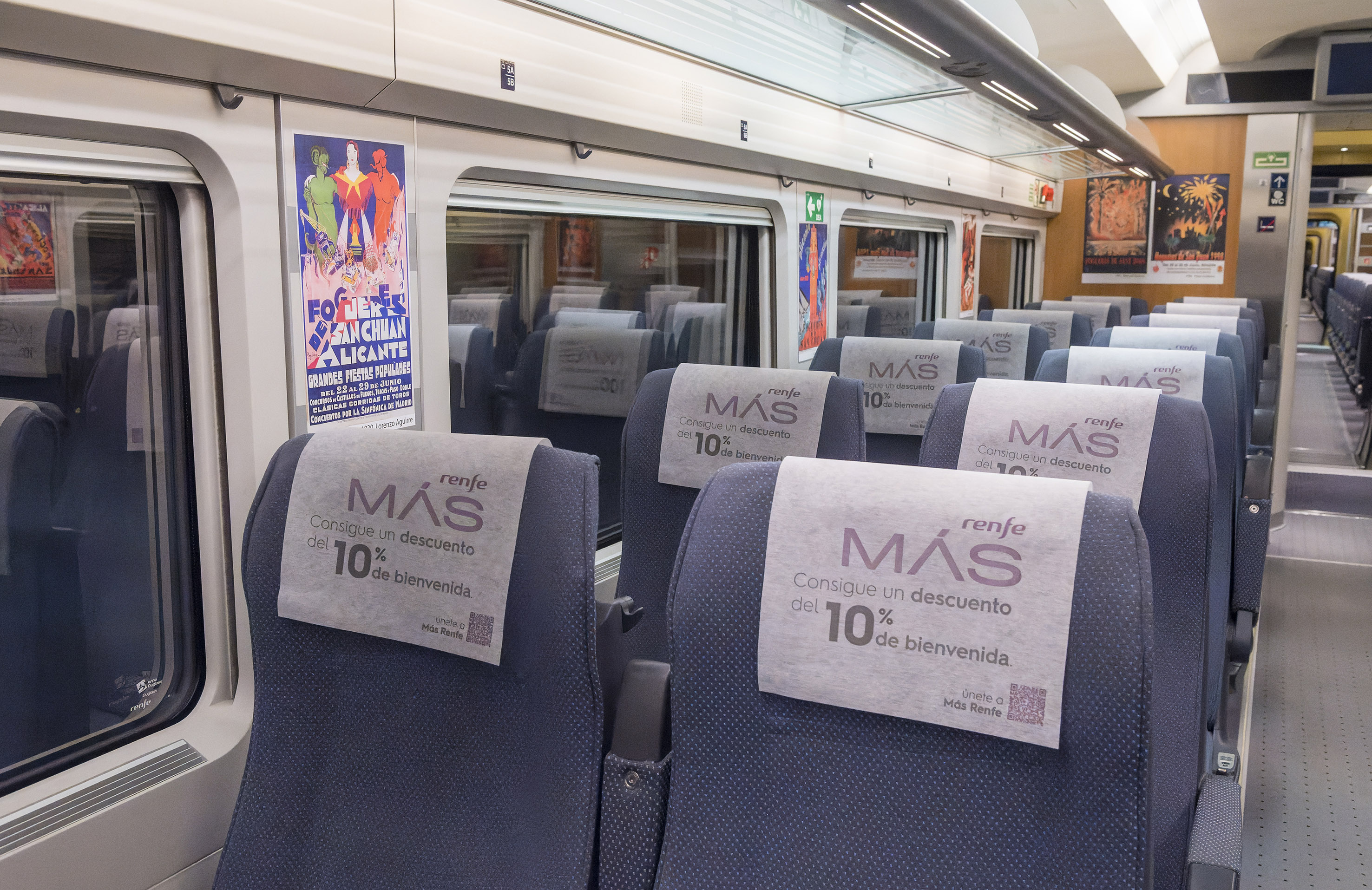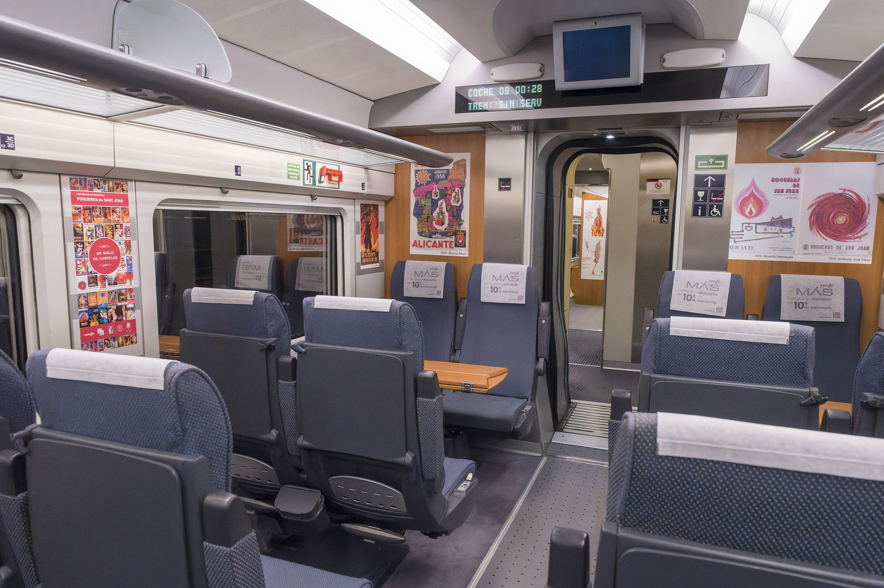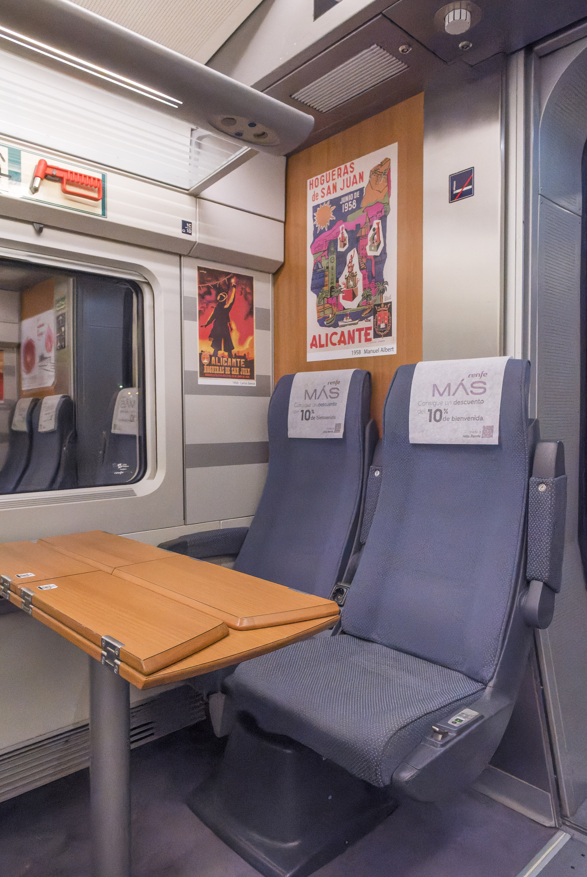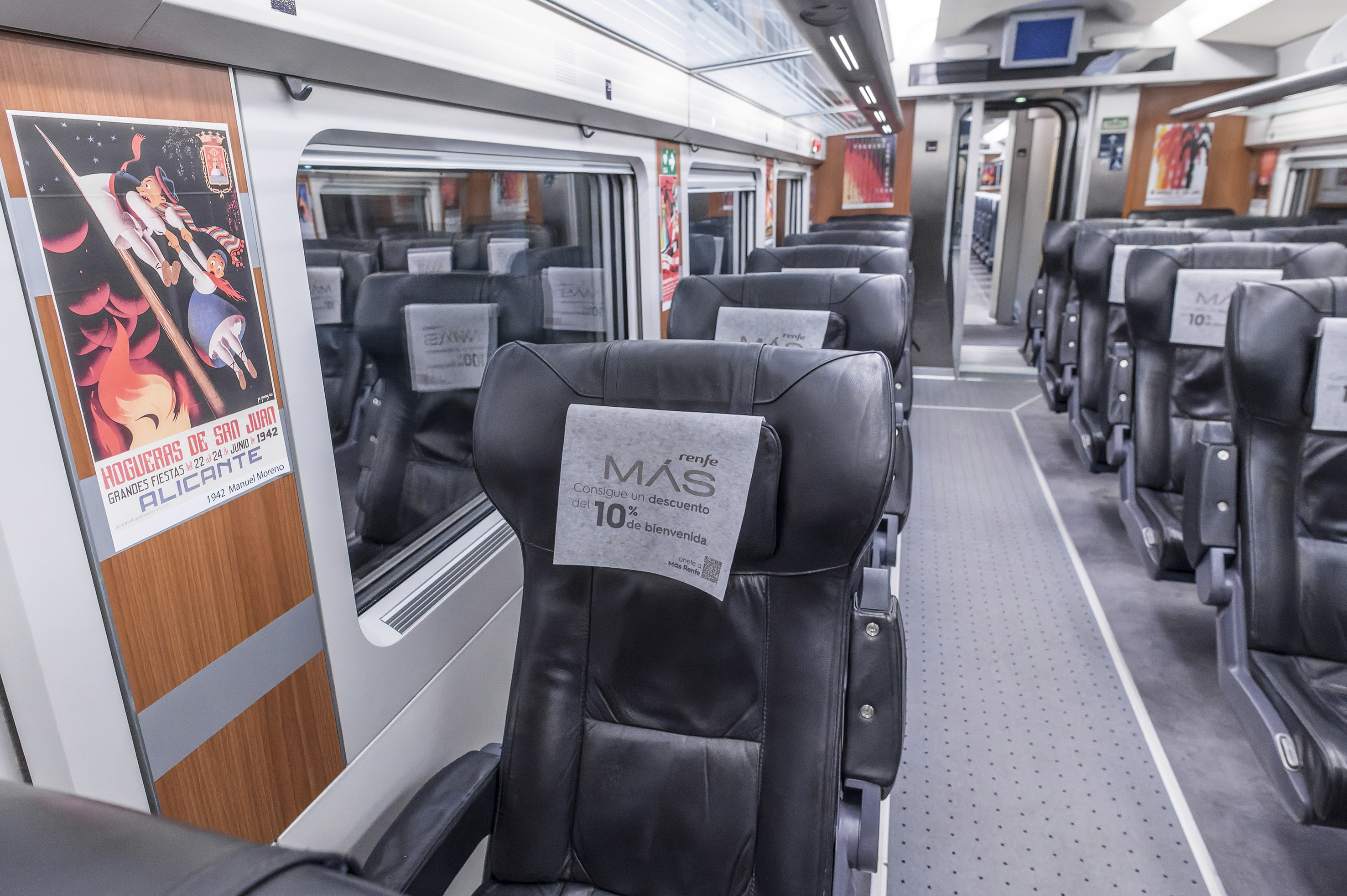 Renfe y la Federació de les Fogueres de Sant Joan presentan desde hoy una selección de casi un centenar de fotografías del mundo de las Hogueras a través de sus carteles en el interior de un tren AVE Alicante-Madrid. La muestra coincide con la celebración de las fiestas mayores de la ciudad y con el décimo aniversario del inicio del servicio del AVE que une ambas capitales.