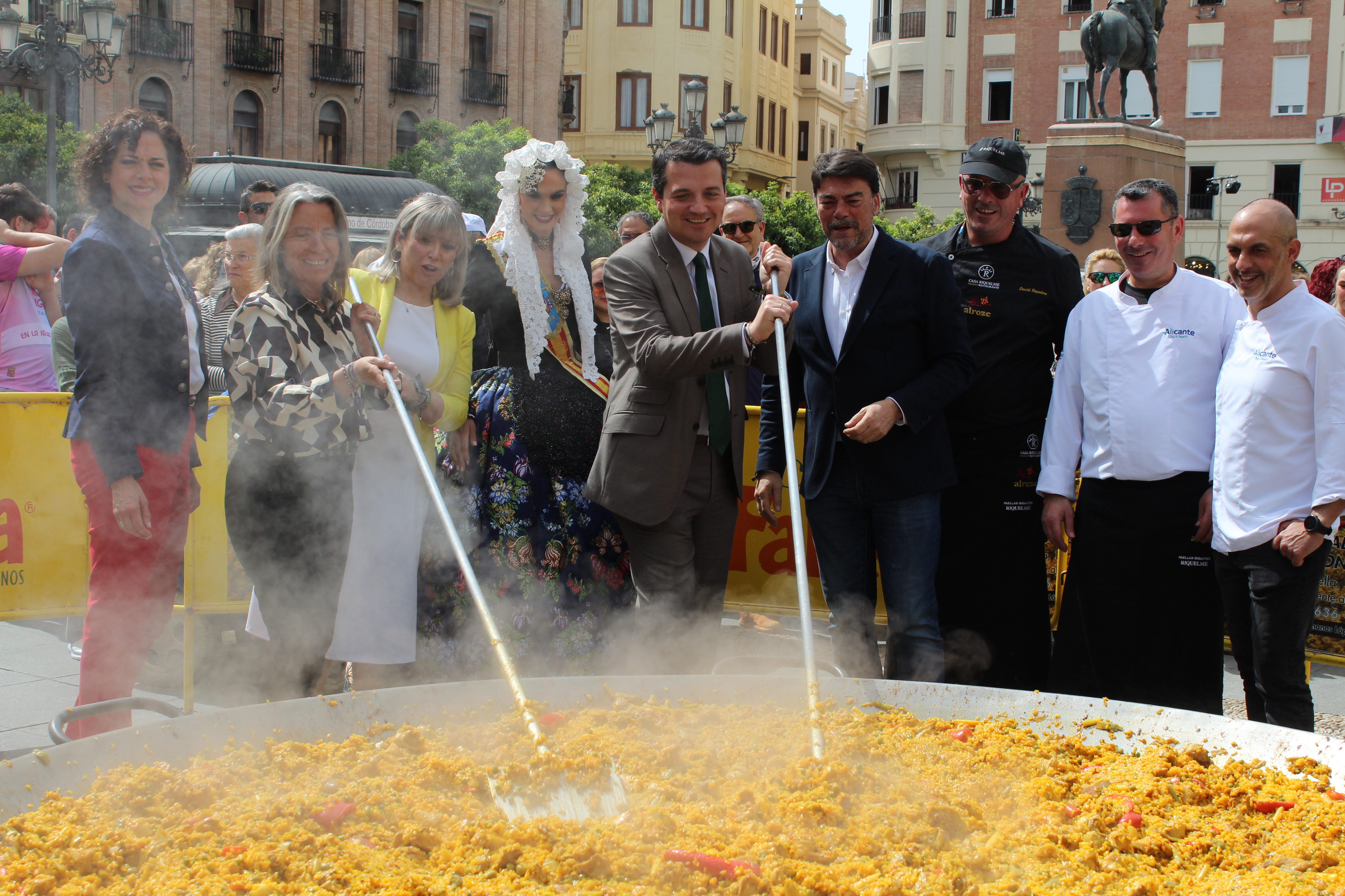 La promoción de les Fogueres y la provincia de Alicante continúa en Córdoba. Este medio día la plaza de las Tendillas, donde la noche del miércoles se plantaron dos hogueras y está instalado un punto de información turística, ha sido lugar de encuentro de cientos de personas que se han desplazado para degustar arroz alicantino y conocer más sobre les Fogures.