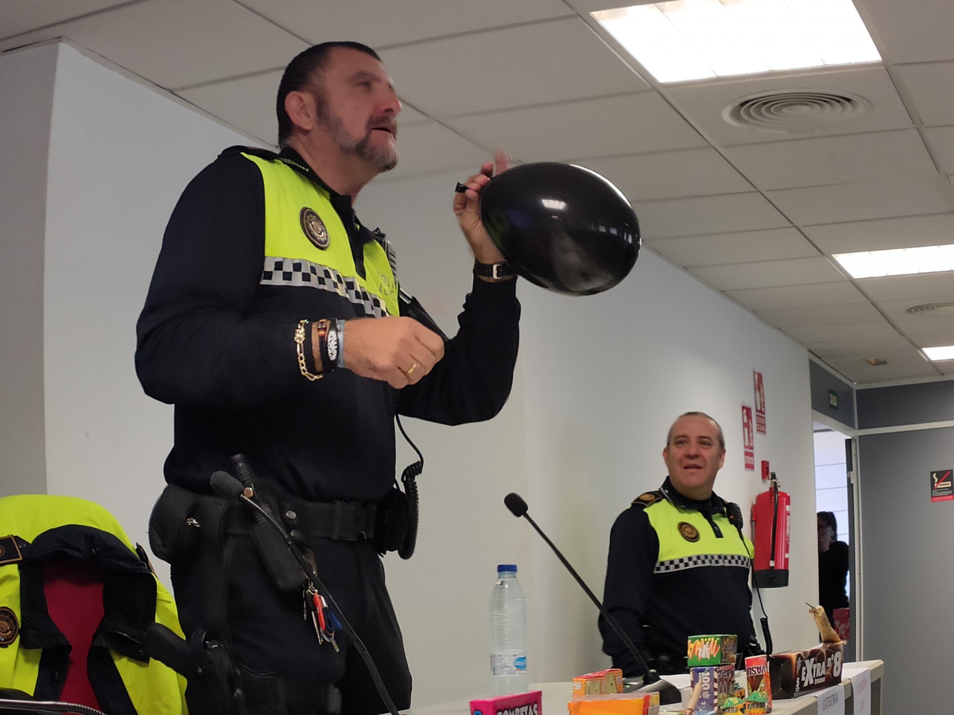 La primera sesión formativa se ha impartido de 11:00 a 13:00, en la Casa de la Festa, donde la Policía Local ha hecho un recorrido visual sobre los artificios pirotécnicos y la demostración de cómo funcionan los petardos y se deben utilizar correctamente.